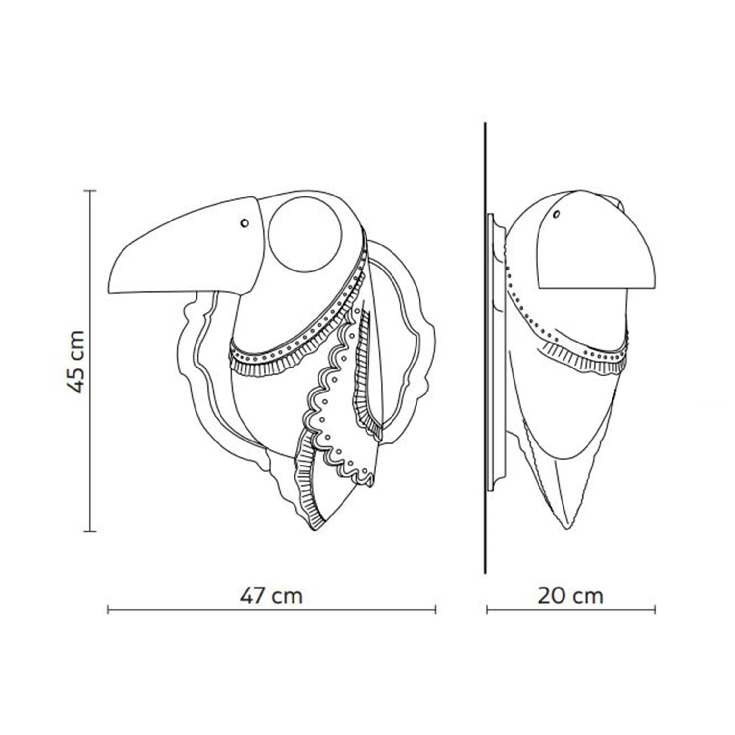 This charming Cubano Wall Light from Karman resembles a tropical avian member of the parrot family. A large beak gives this creature plenty of personality as it peers at you with wise glowing LED bulb eyes.