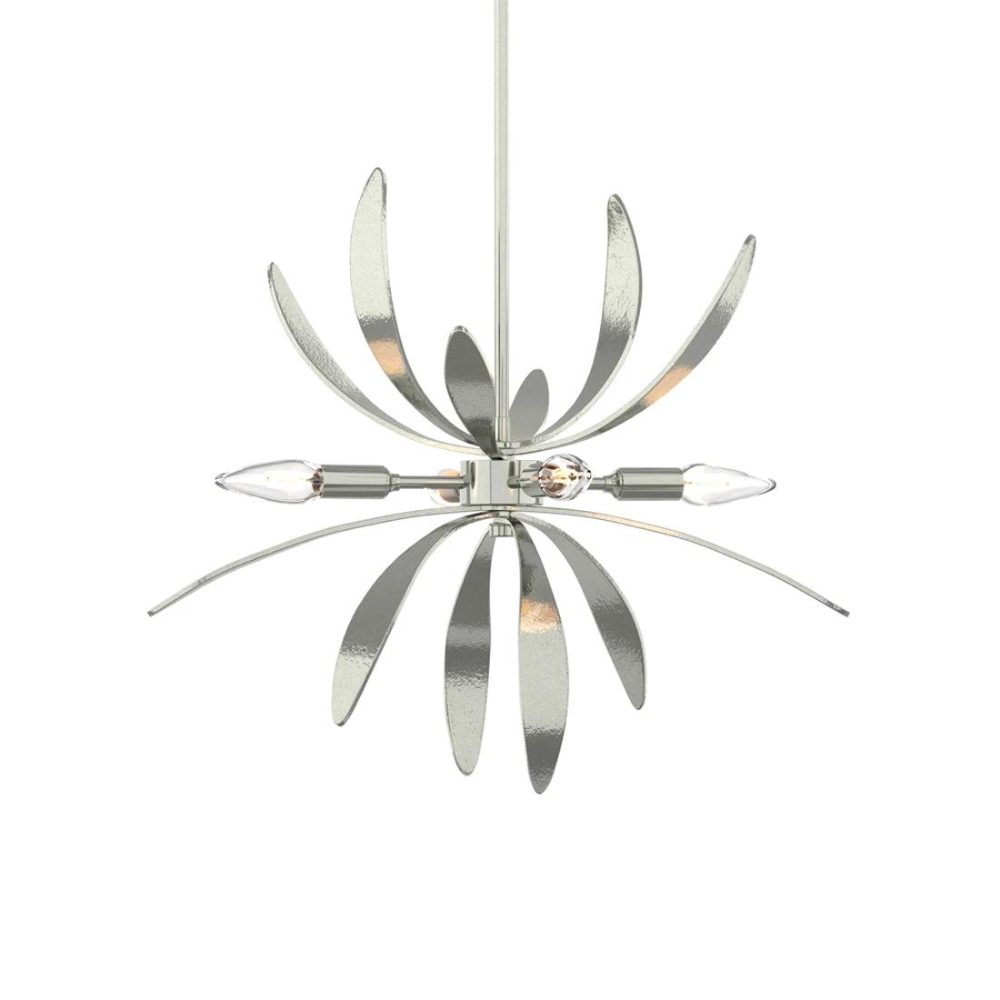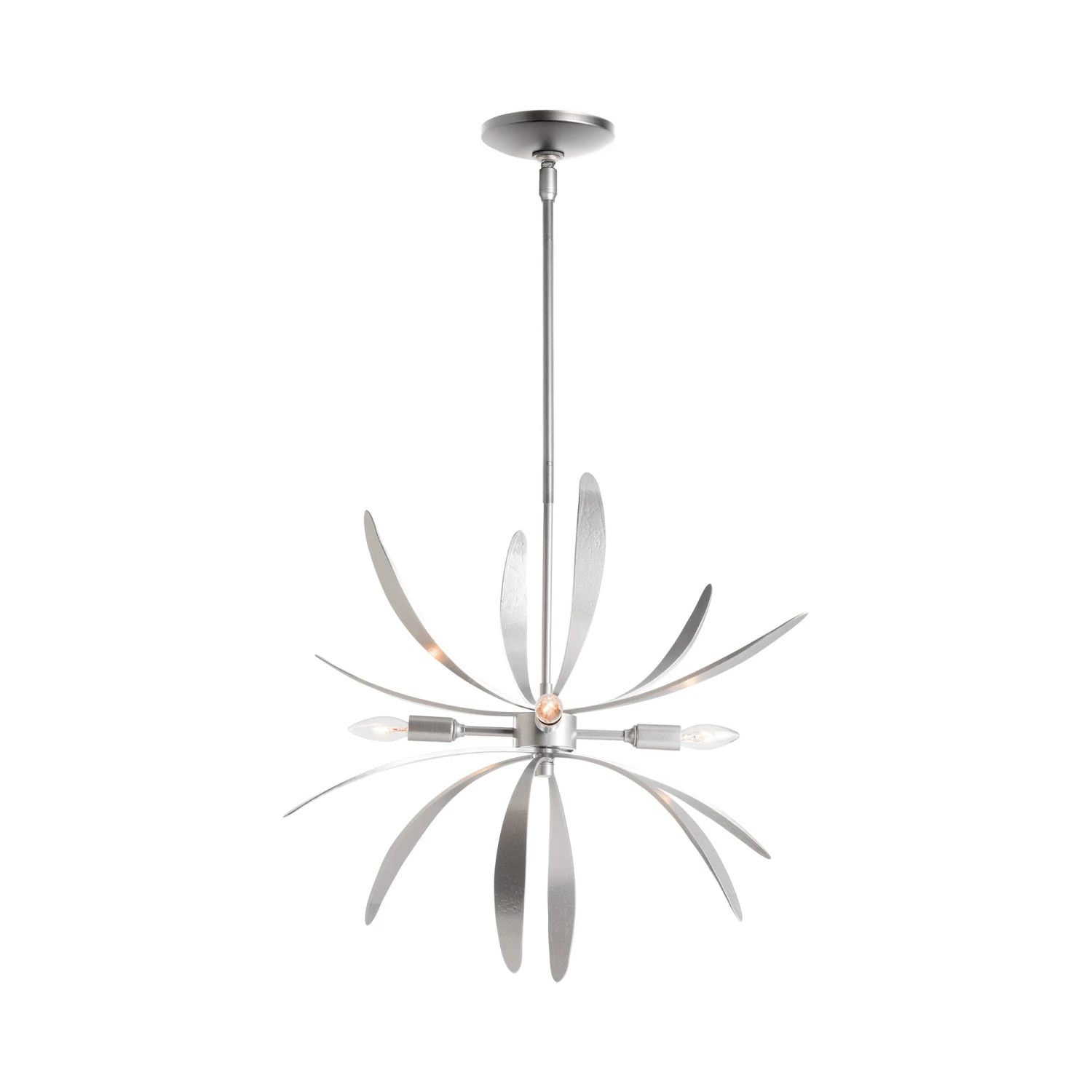 Floral inspiration takes flight in the Dahlia Pendant Light from Hubbardton Forge, where layered, hand-shaped forms bloom outward around a glowing core. Suspended with subtle drama, it casts a soft, ambient light that adds movement and warmth overhead. A stunning blend of nature and artistry, it brings graceful charm to dining areas, entryways, or intimate spaces.