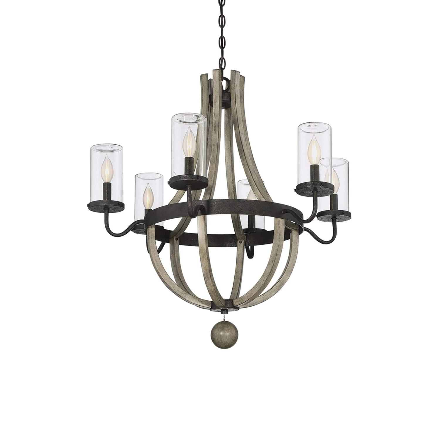 The fine artistry of interior lighting moves outdoors to offer tasteful style and ambient illumination. The Eden Outdoor Chandelier from Savoy House adds an alluring silhouette with nature-inspired materials including weathervane finish openwork metal framing with an elegant, curved profile. Dark metal accents and cup holder arms contrast brilliantly with clear glass cylinder shades offering the romantic appeal of candelabra lighting.
