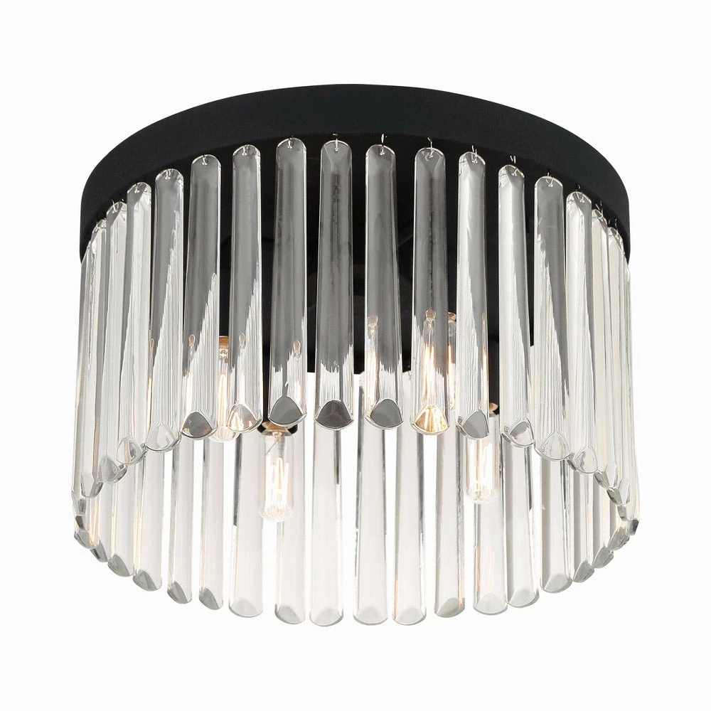 Approach lighting with a new attitude, adopting a gritty industrial angle to the chic glam you love. The Emory Flush Mount Ceiling Light from Crystorama transforms a kitchen, living room, or dining room space as it reflects illumination through carefully aligned glass rods dangling from a round metal frame. Cohesive and minimalist in nature, this ceiling light offers clear versatility.