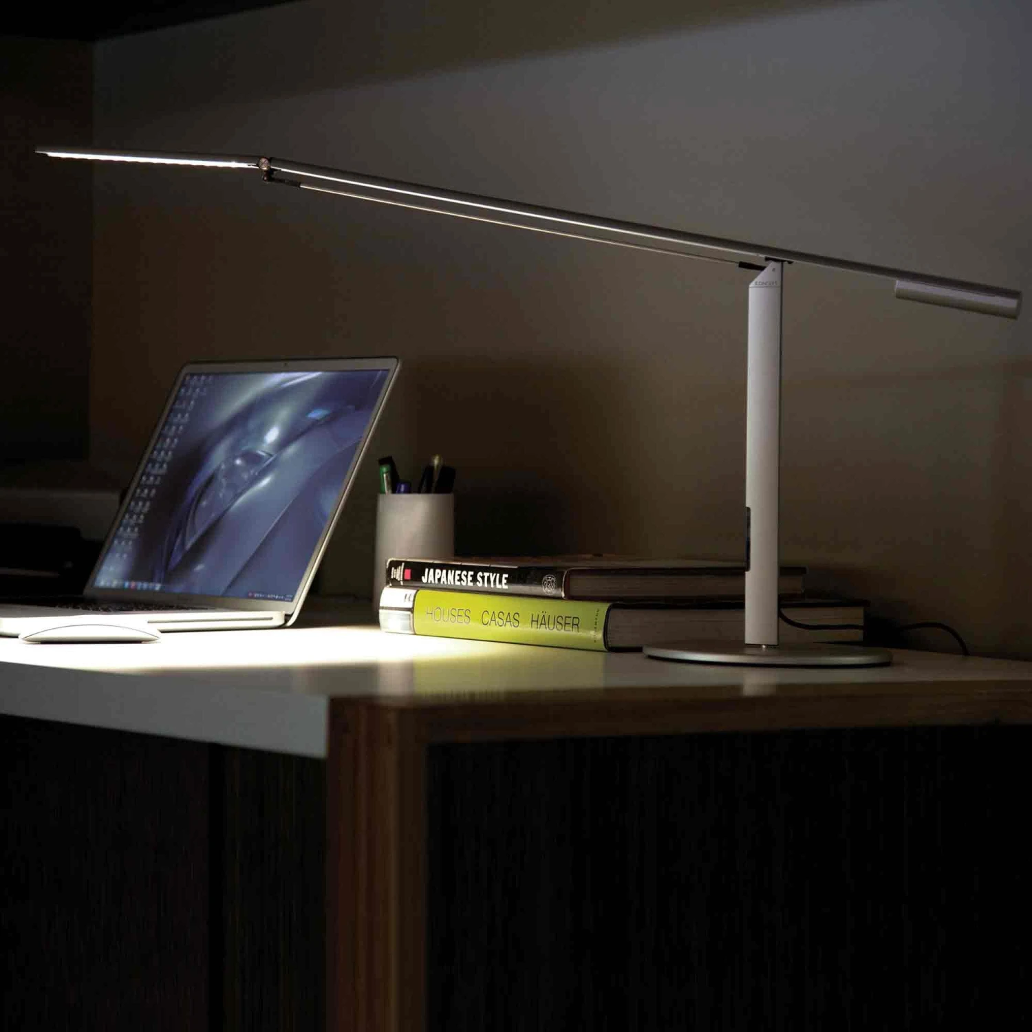 Equo Desk Lamp features a discreet counterweight design for feather-light adjustability. Equo’s innovative design has won 11 international product design awards including the renowned Red Dot award. One finger is all you need to adjust the floating arm’s position. The special neck joint maintains the head’s tilt as the arm swings up or down. Slide your finger along the stem’s touchstrip to control brightness and power. The luminaire head is rotatable up to 180 degrees. Compatible with optional occupancy sensor and multiple mounting options.