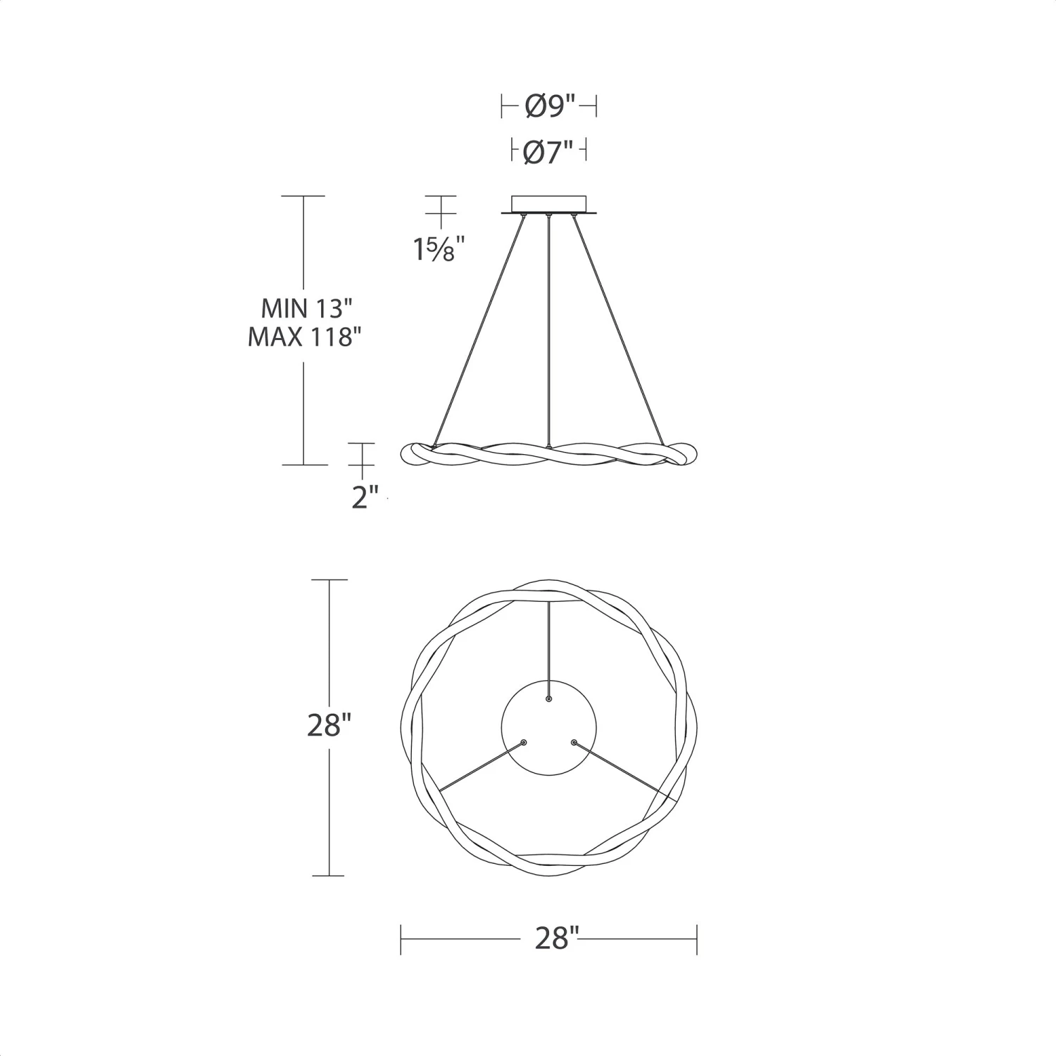 - Dimensions: 28″D X 2″H; 118″ max height