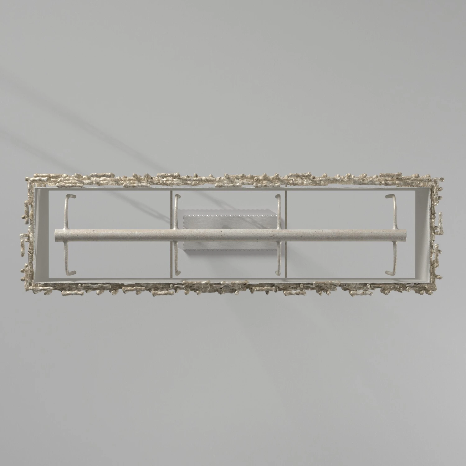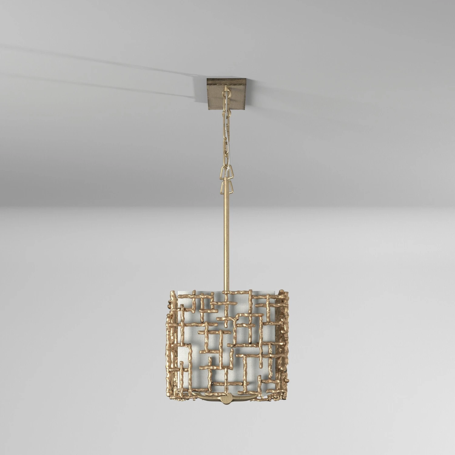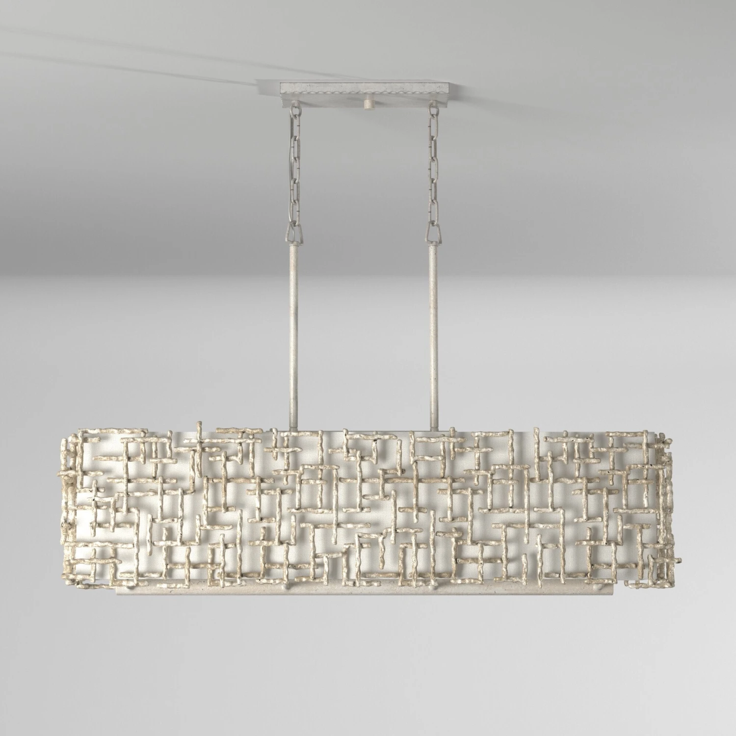 Crosshatch bars are hand-hammered to introduce rich texture and elegant dimension to the Farrah Linear Pendant Light from Fredrick Ramond.