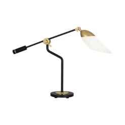 Choose the Ferdinand Table Lamp from Robert Abbey to reflect on industrial inspiration with stylized angles and elegant materials that show off design-forward attitude with adjustable lighting options.