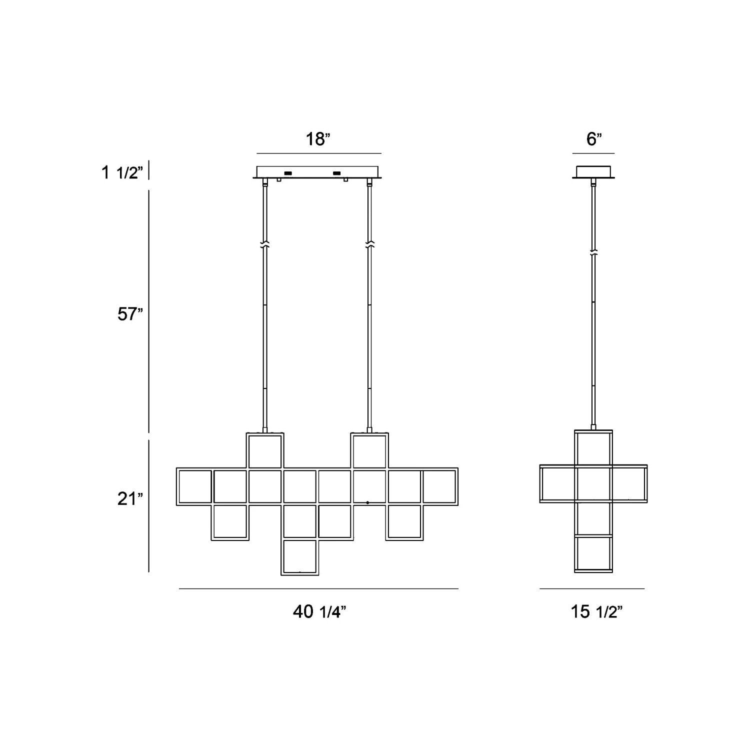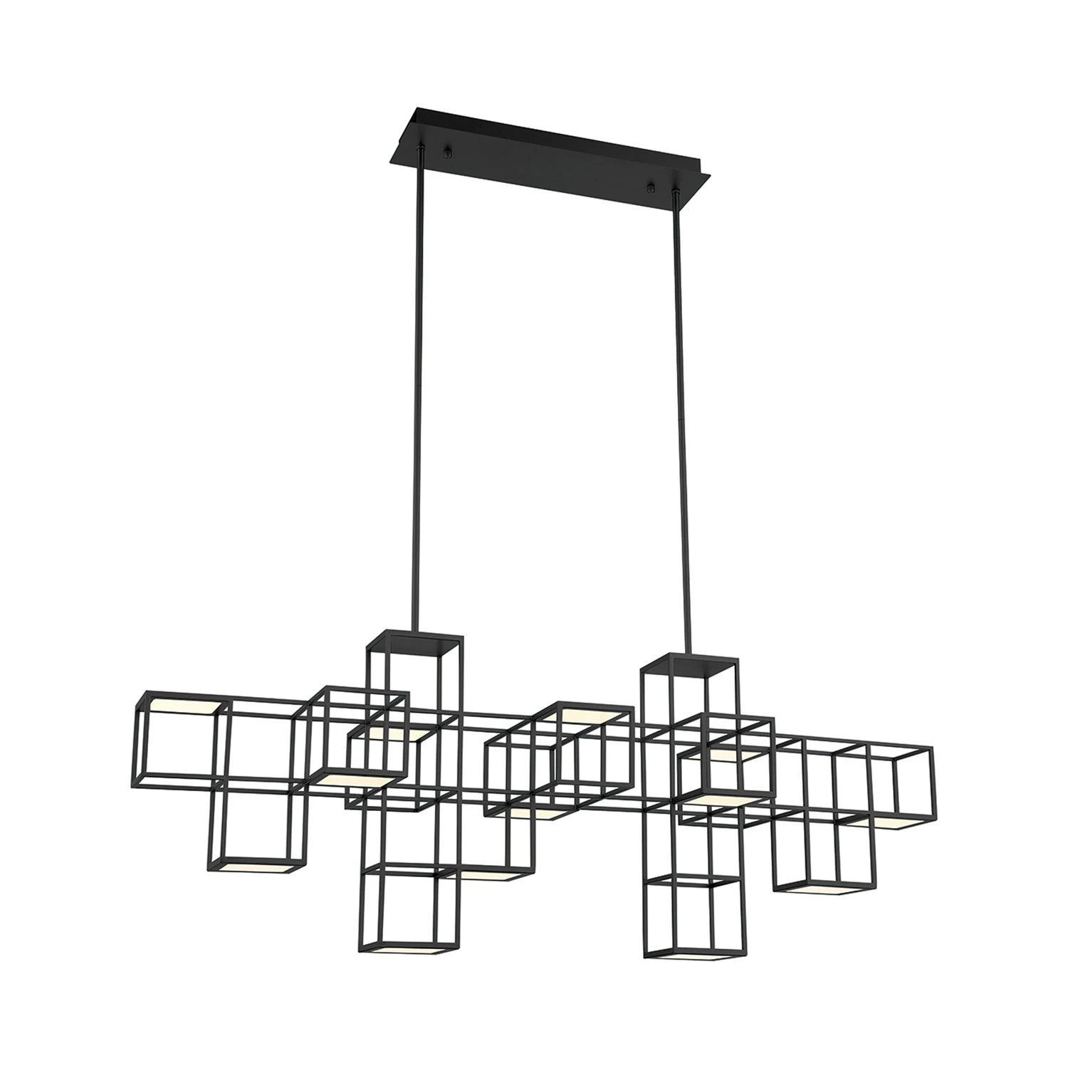 Architecture forms structure in a design-forward approach to interior lighting as the Ferro LED Linear Pendant Light from Eurofase invites intriguing dimensionality geometric flavor to a modern space. Create a conversation piece with this metal fixture formed of open metalwork cubes with LED panels emitting soft, soothing, energy-efficient light. A puzzle-like motif delivers a statement-making look ideal for industrial-inspired settings.