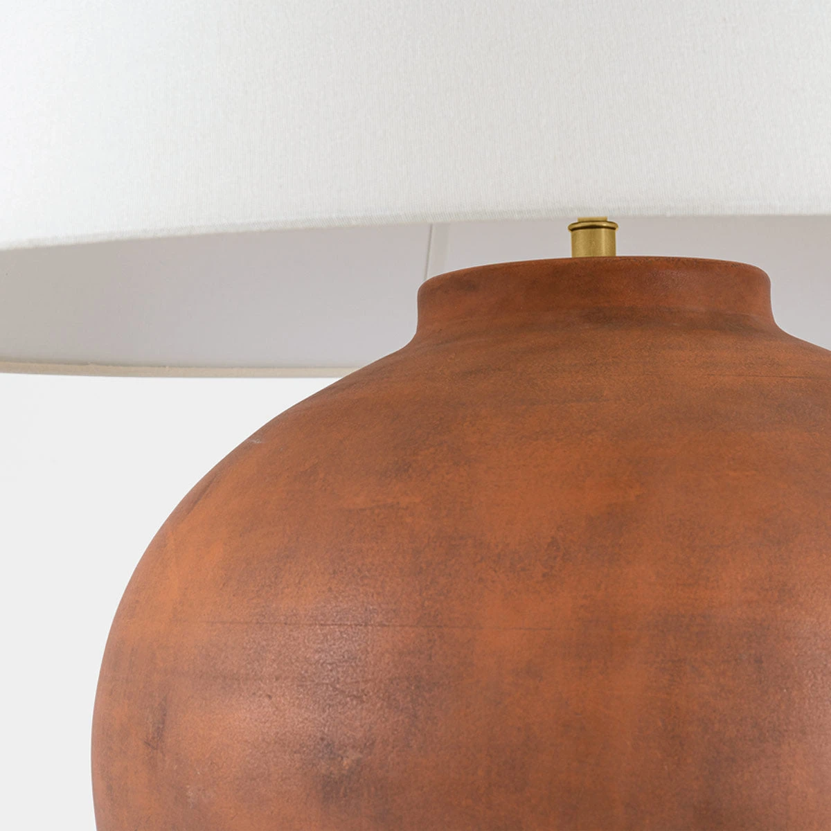 Quench a thirst for sheer rustic flavor with a bold and stylish lamp. Perfect for living rooms and bedrooms, the Fischer Table Lamp from Visual Comfort Signature invokes an earthy ambiance with a vase ceramic body and conventional empire shade. Metal accents are subtle and stealth, maintaining focus on the exotic nature of this decadent lamp.