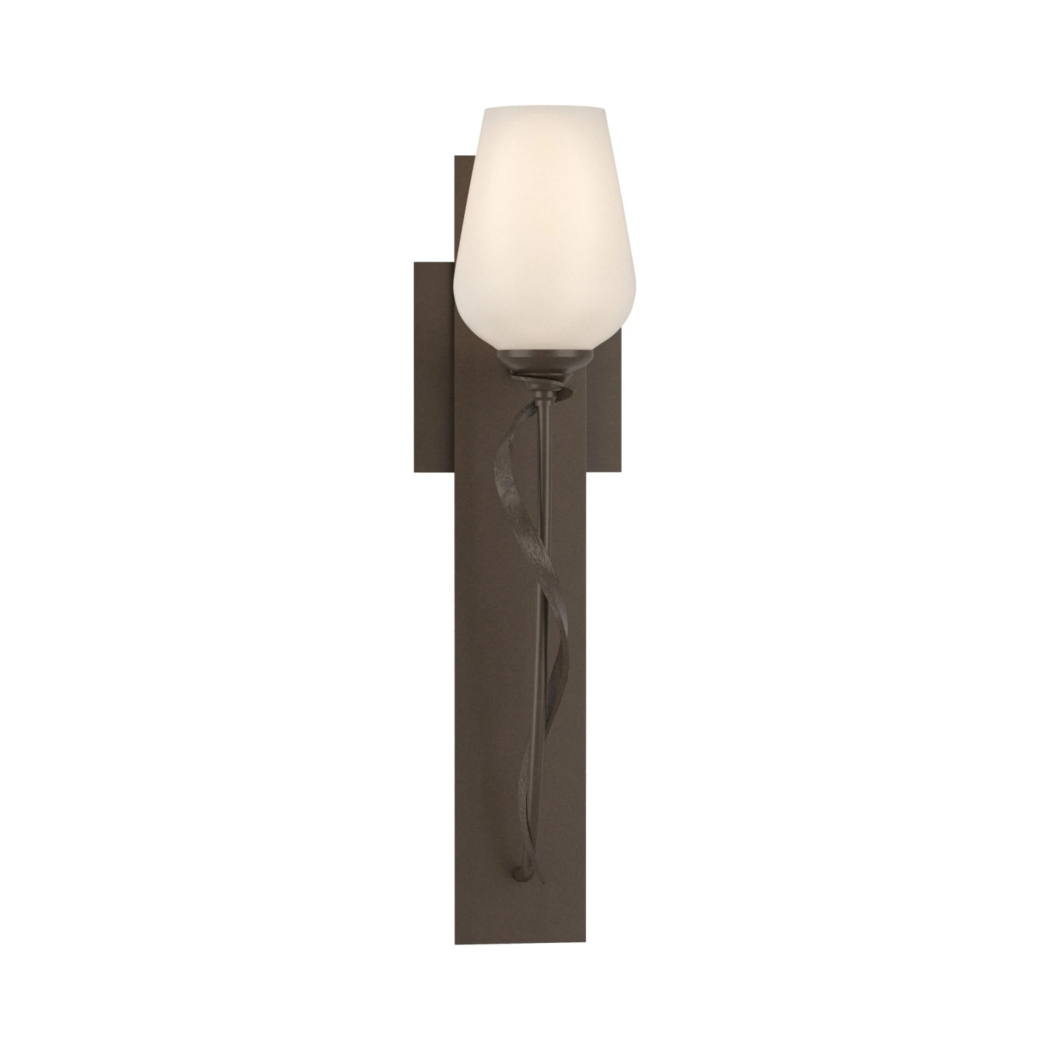 A slender arm curves upward in the Flora Stem Wall Light from Hubbardton Forge, resembling a single stem about to bloom. The minimal form is enriched by organic lines, casting a soft glow that complements the fixture’s natural inspiration. Perfect for flanking mirrors or lining hallways, it brings understated artistry to the wall.