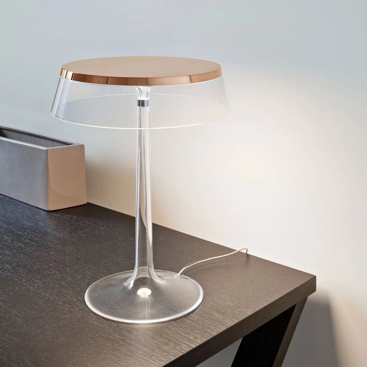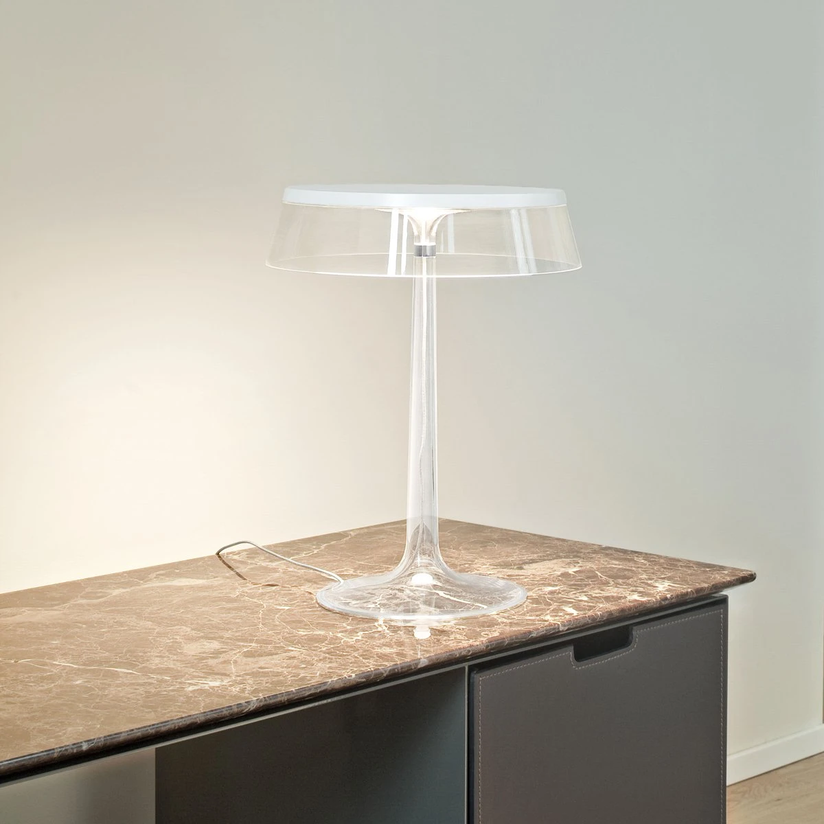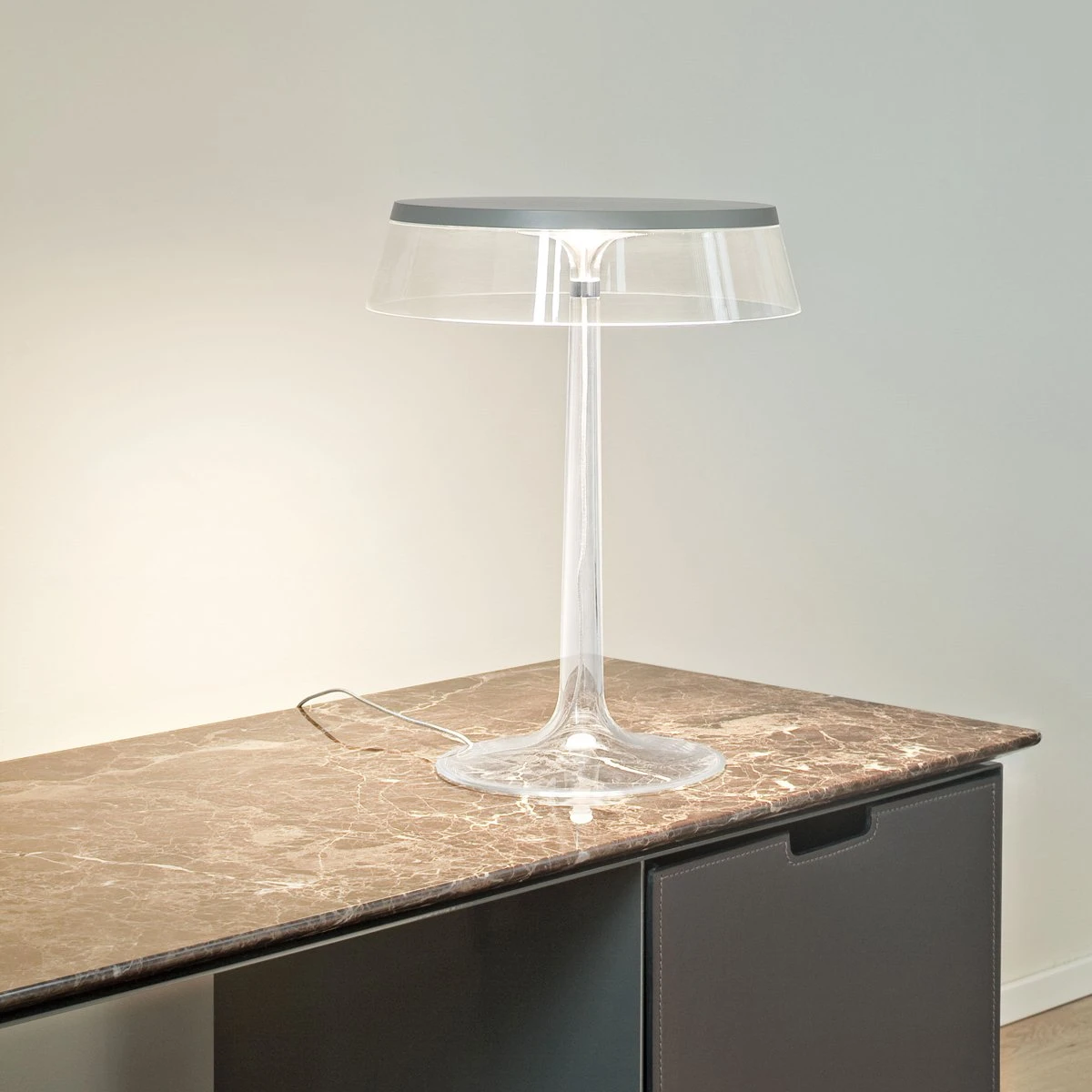 Offered in a variety of colorful hues, the Bon Jour LED Table Lamp from FLOS adds a playful, modern touch of character to a contemporary décor scheme.