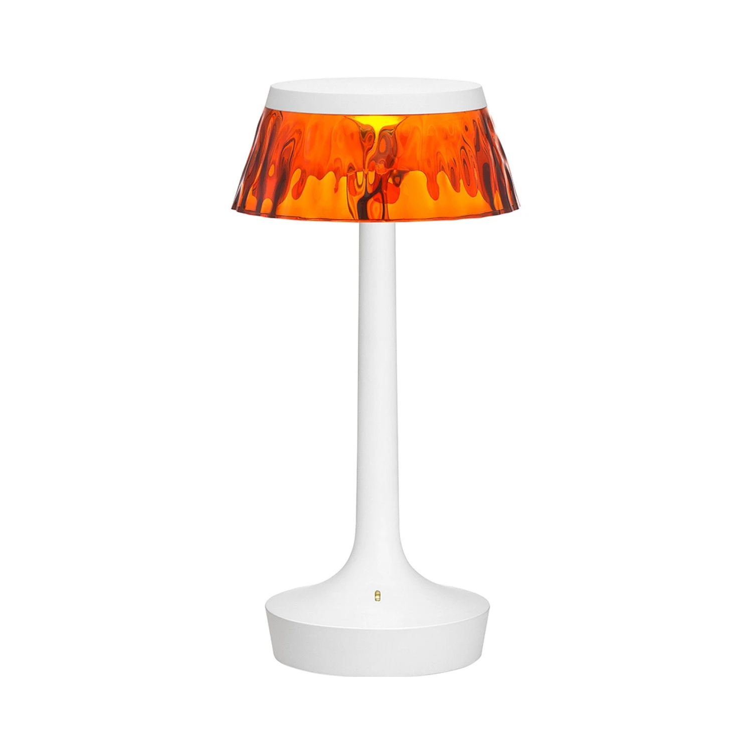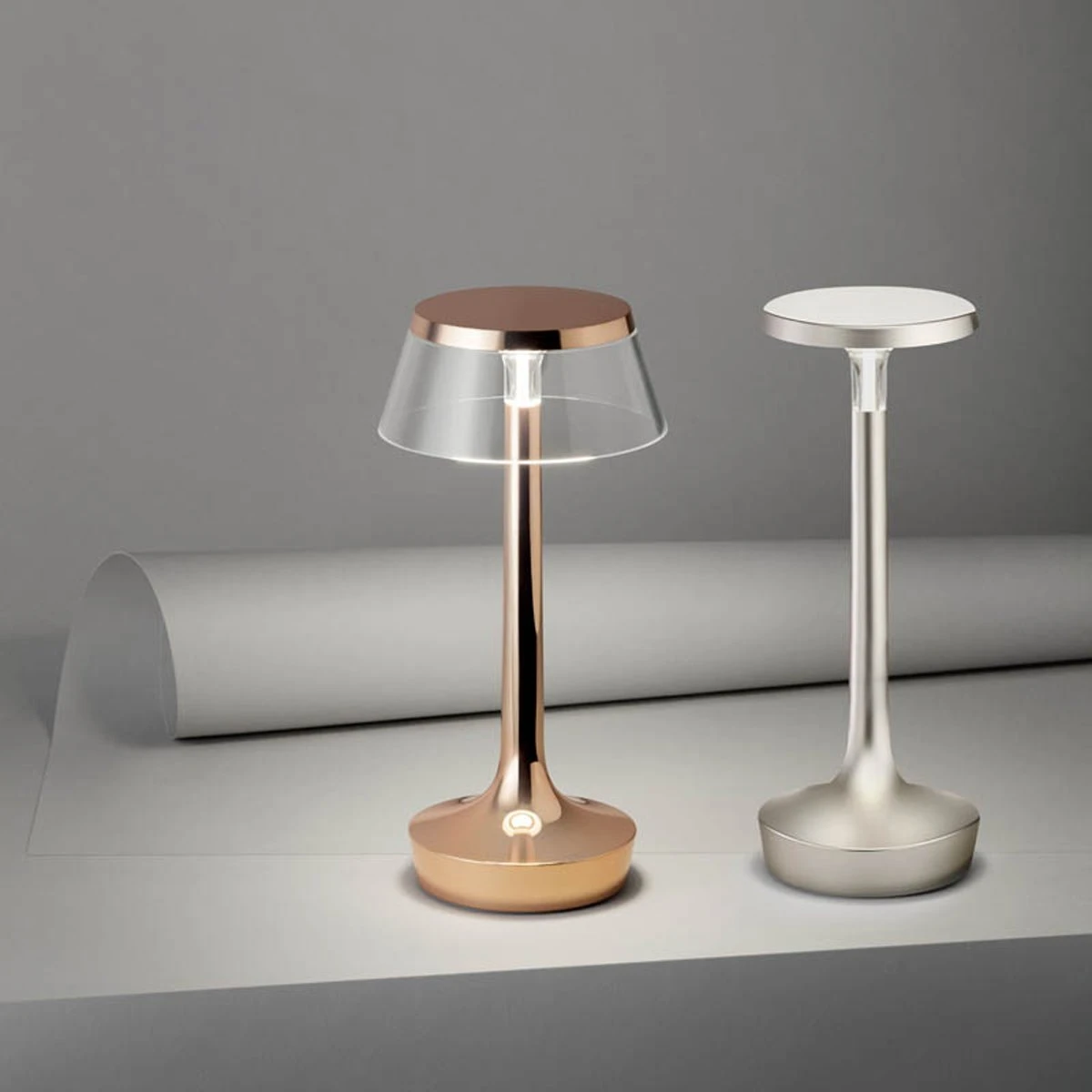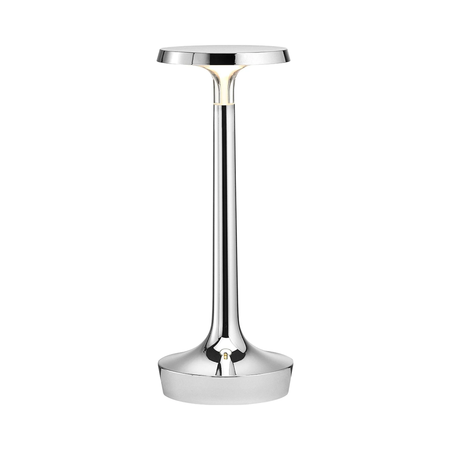 Blending elegant texturing with a brilliant, polished shine, the Bon Jour Unplugged Wireless LED Table Lamp from FLOS elegantly emboldens the modern home interior.