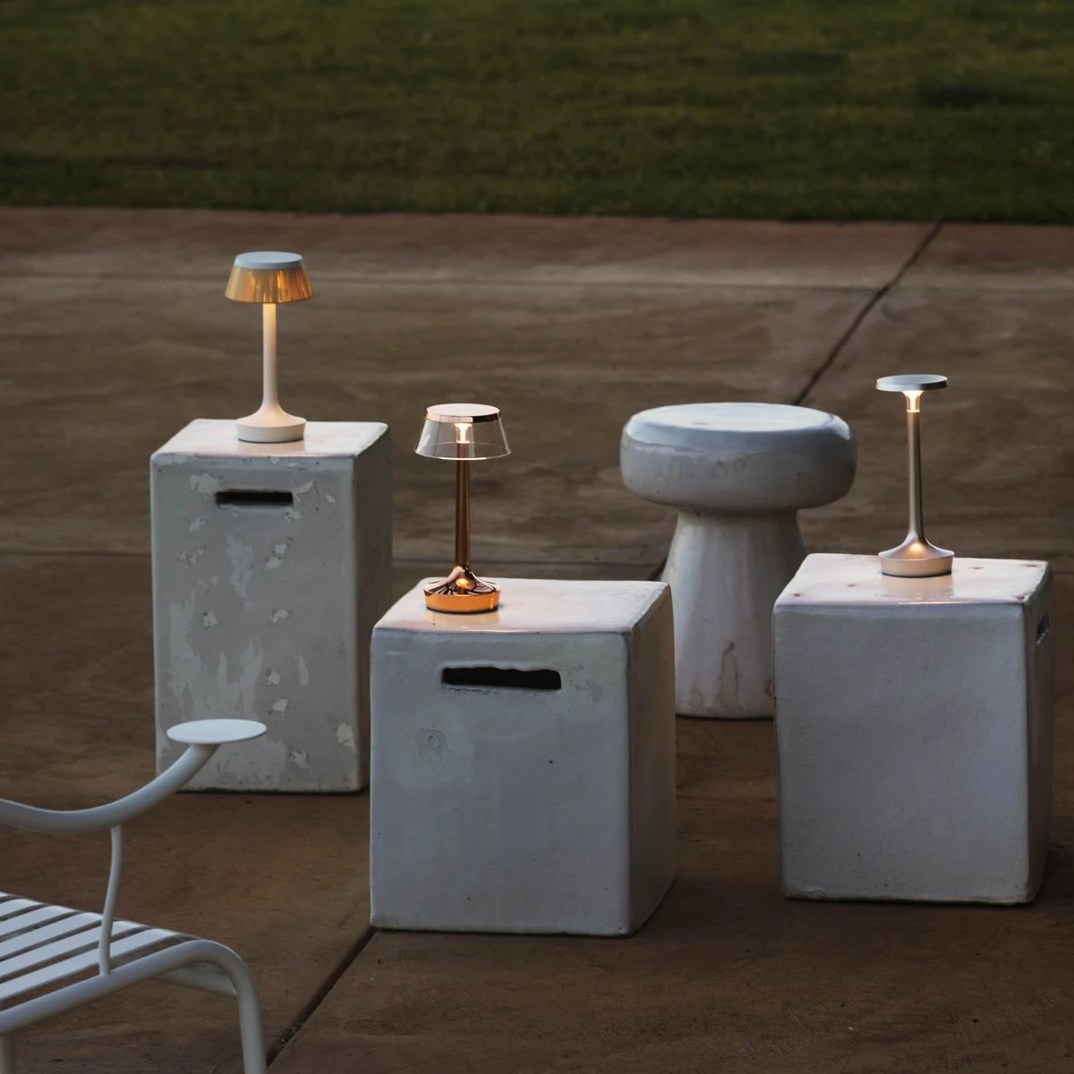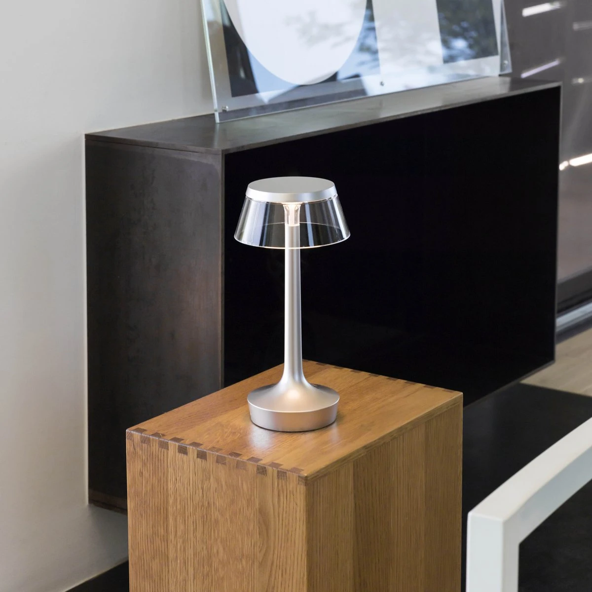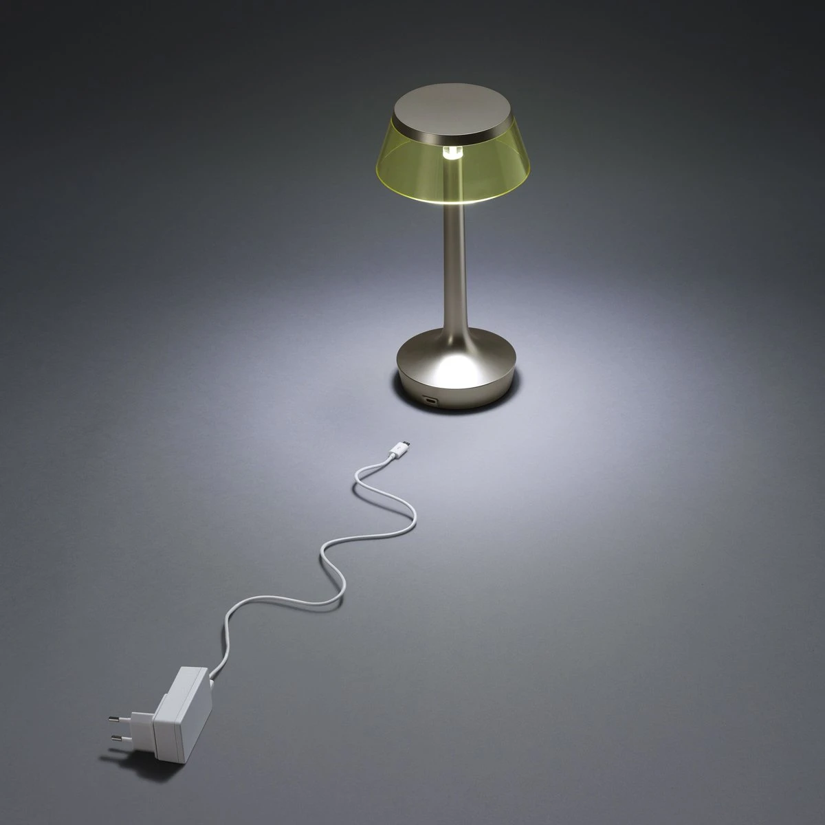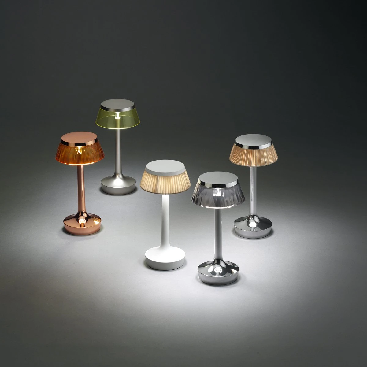 Blending elegant texturing with a brilliant, polished shine, the Bon Jour Unplugged Wireless LED Table Lamp from FLOS elegantly emboldens the modern home interior.