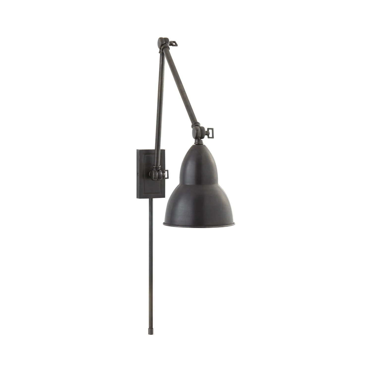 Ultimate flexibility follows the adjustable lighting feature that makes this French Library Double Arm Wall Light from Visual Comfort Signature a splendid choice. This fixture creates a wide range of illumination for tasks and reading as it signals a true industrial style motif. Metal construction showcases gritty industrial accenting and gleams in a dual-dome metal shade.