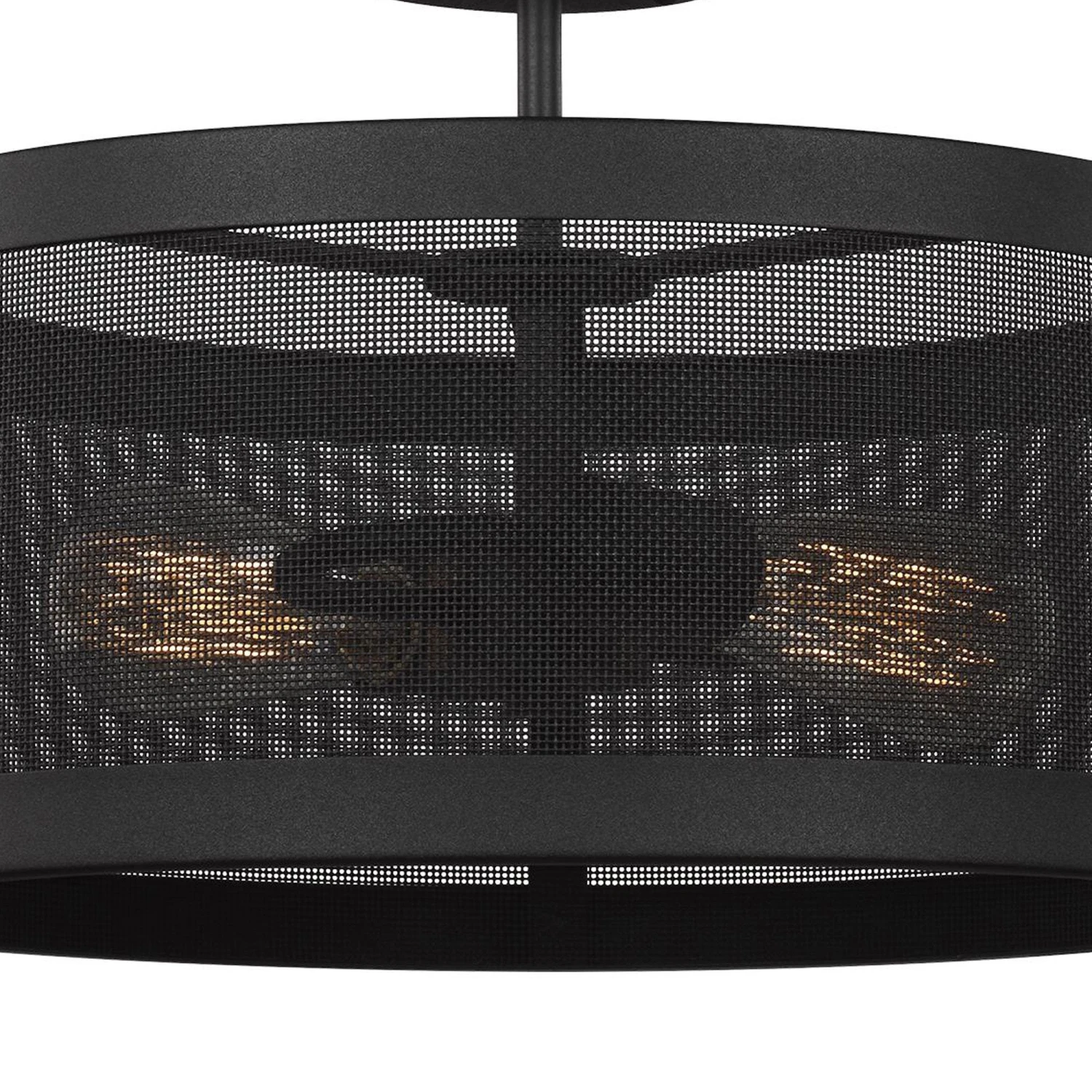 A metal mesh drum reinforces the industrial design bent of the eye-catching Gereon Semi-Flush Convertible Pendant Light from Visual Comfort Studio.