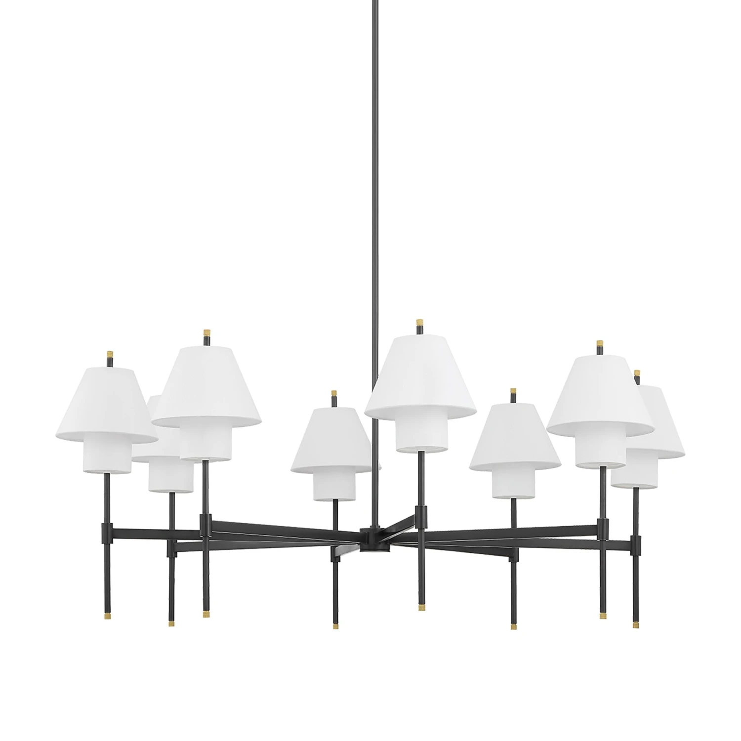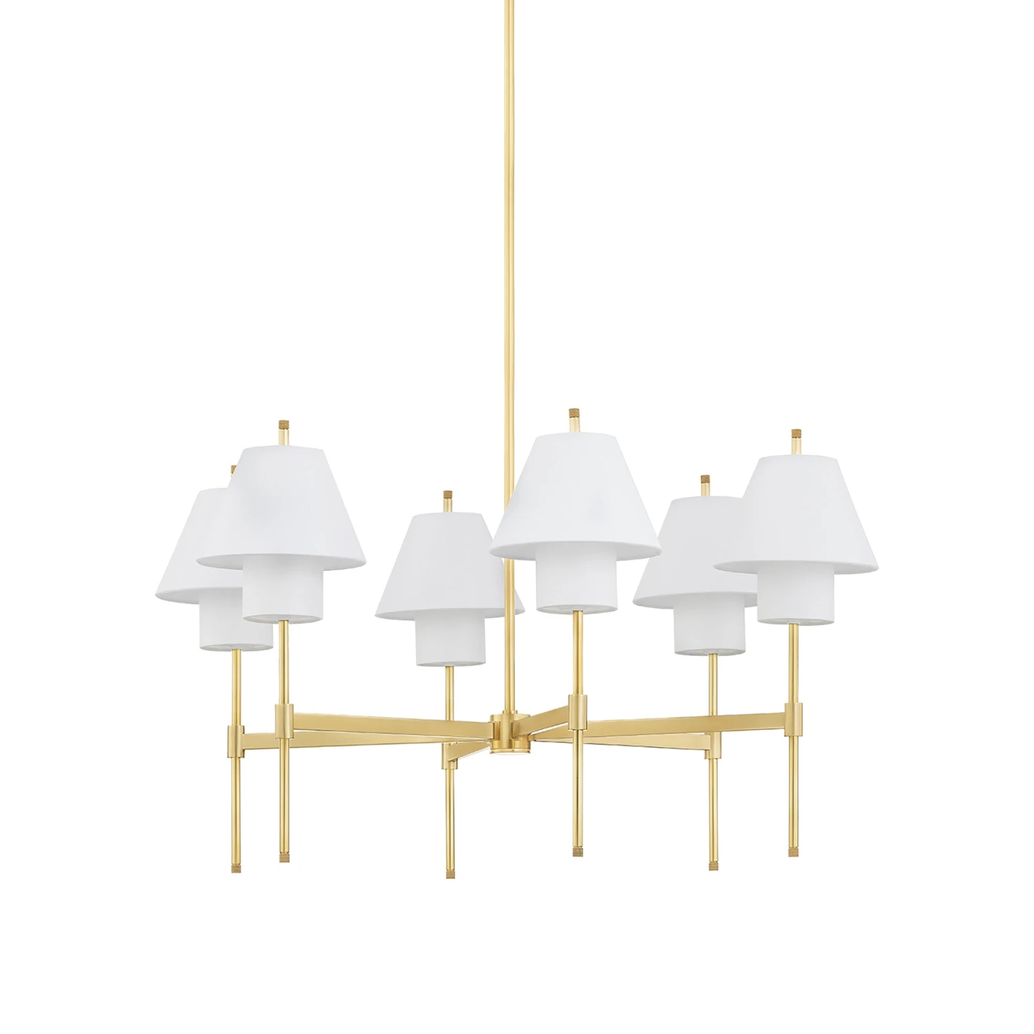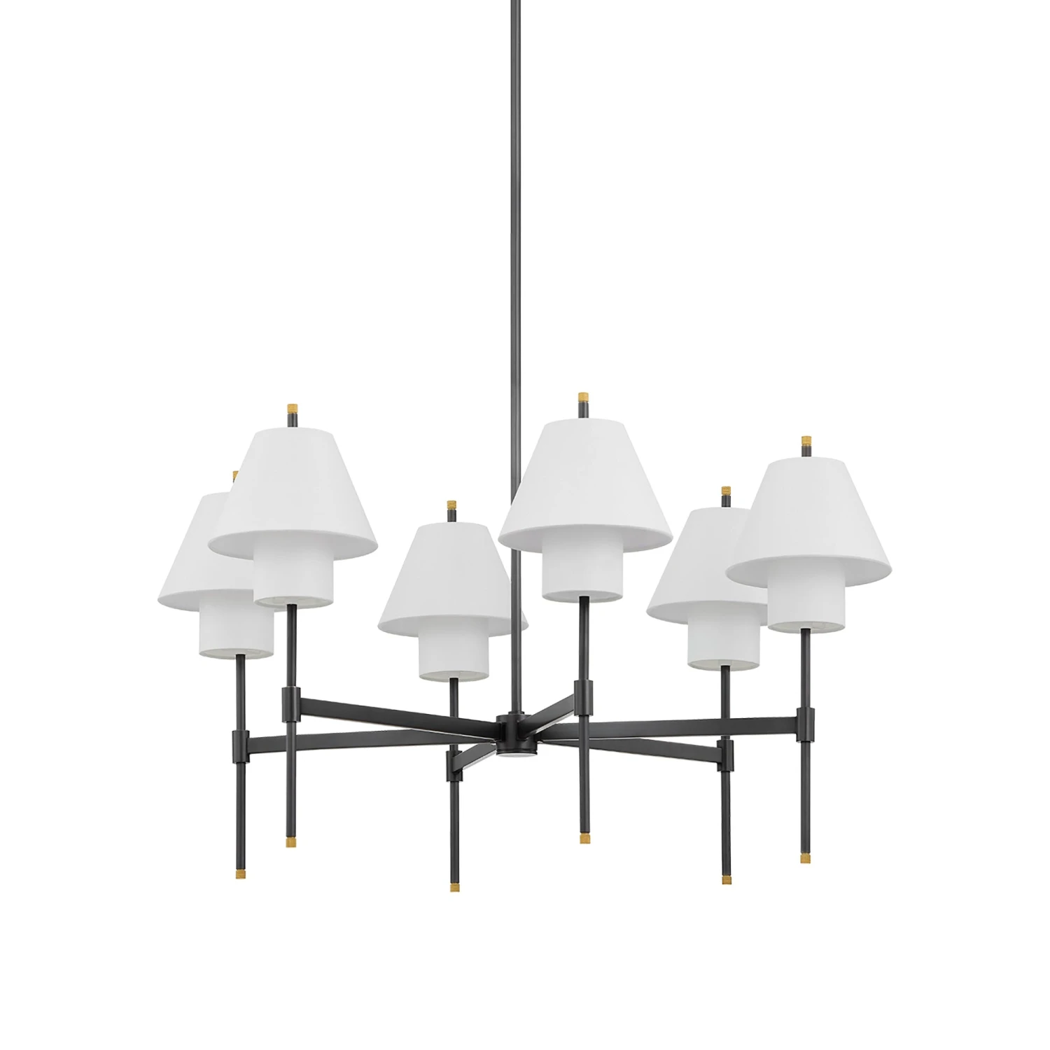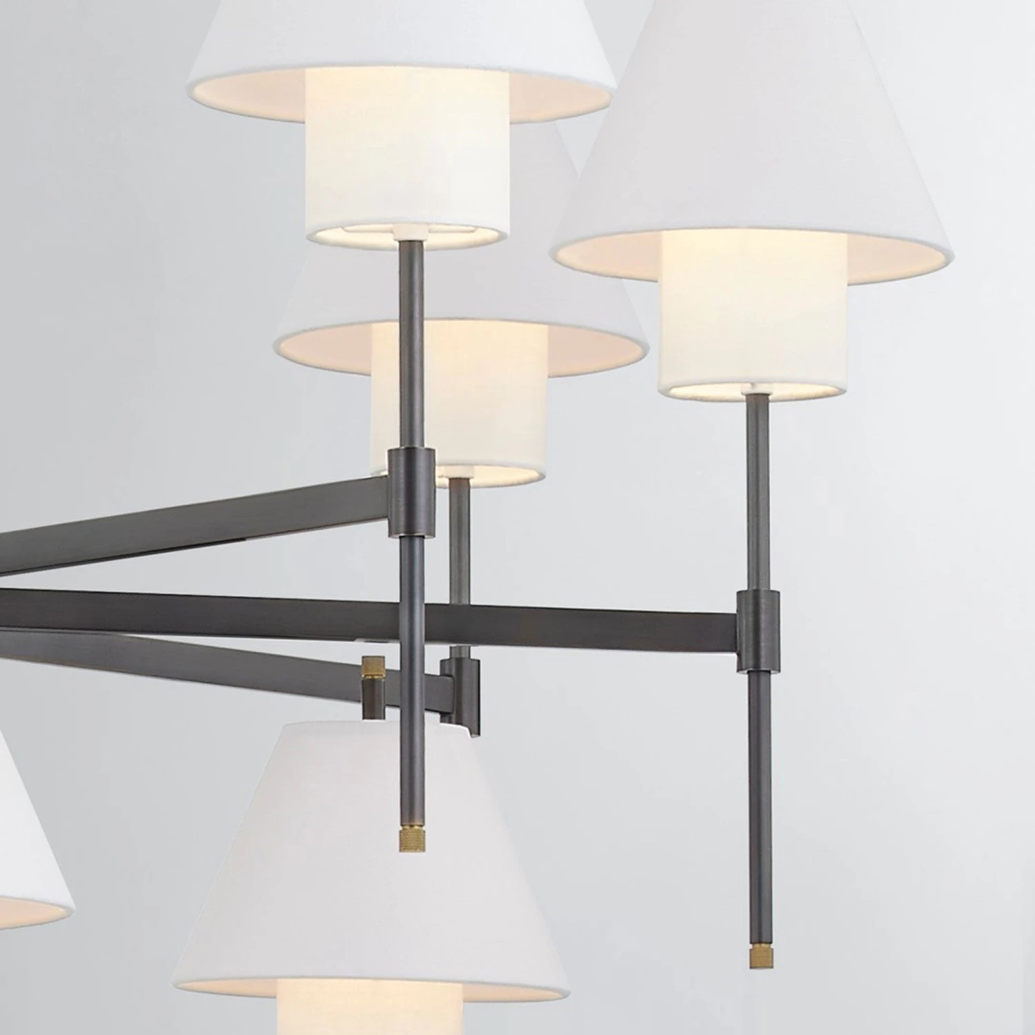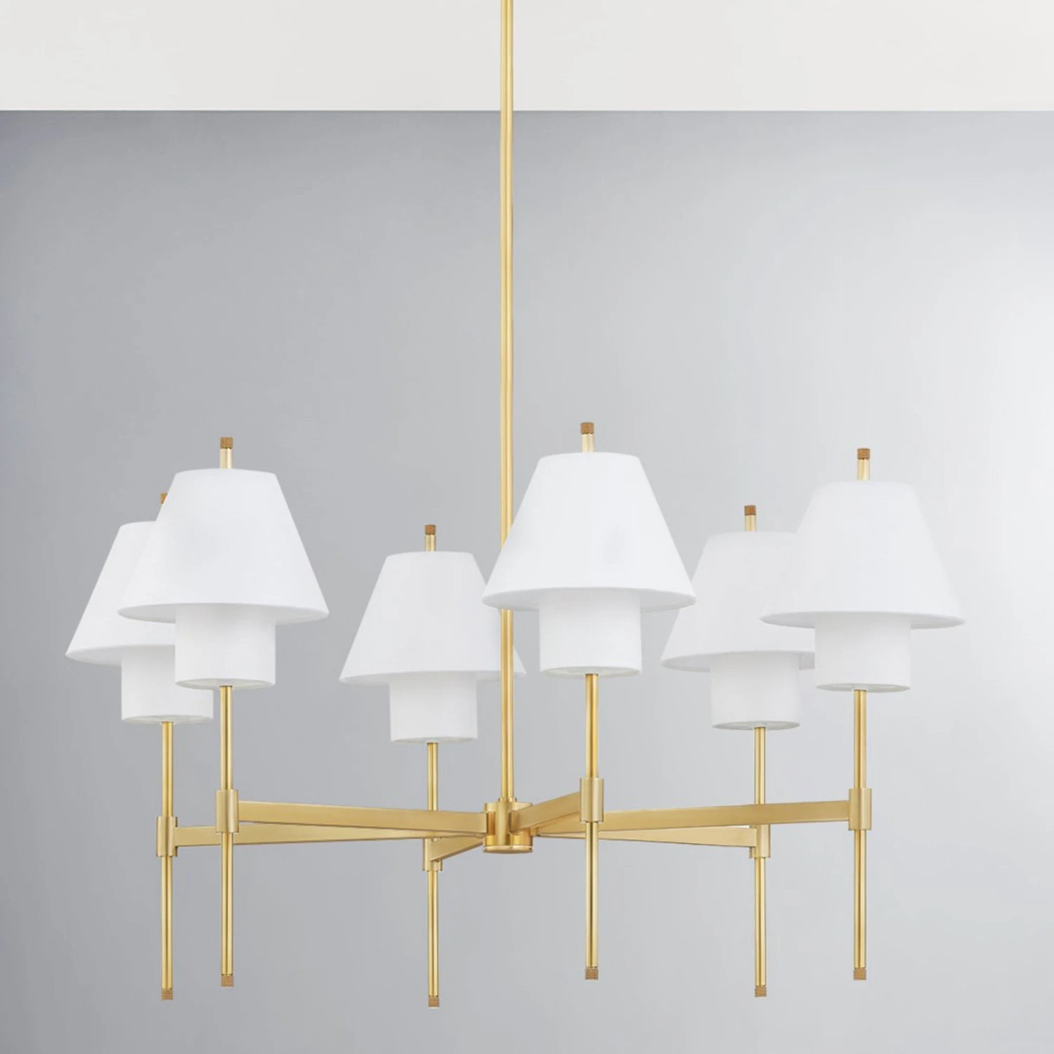 A showcase design template crafting eye-catching festivity in the Glenmoore Chandelier from Hudson Valley Lighting becomes a novelty in a modern space. Choose this creatively styled fixture blending custom finish metal framing with a fun spin on mushroom silhouetting shaping Belgian linen shades. This inspired fixture is part of an overall venture into updated Art Deco attitude.