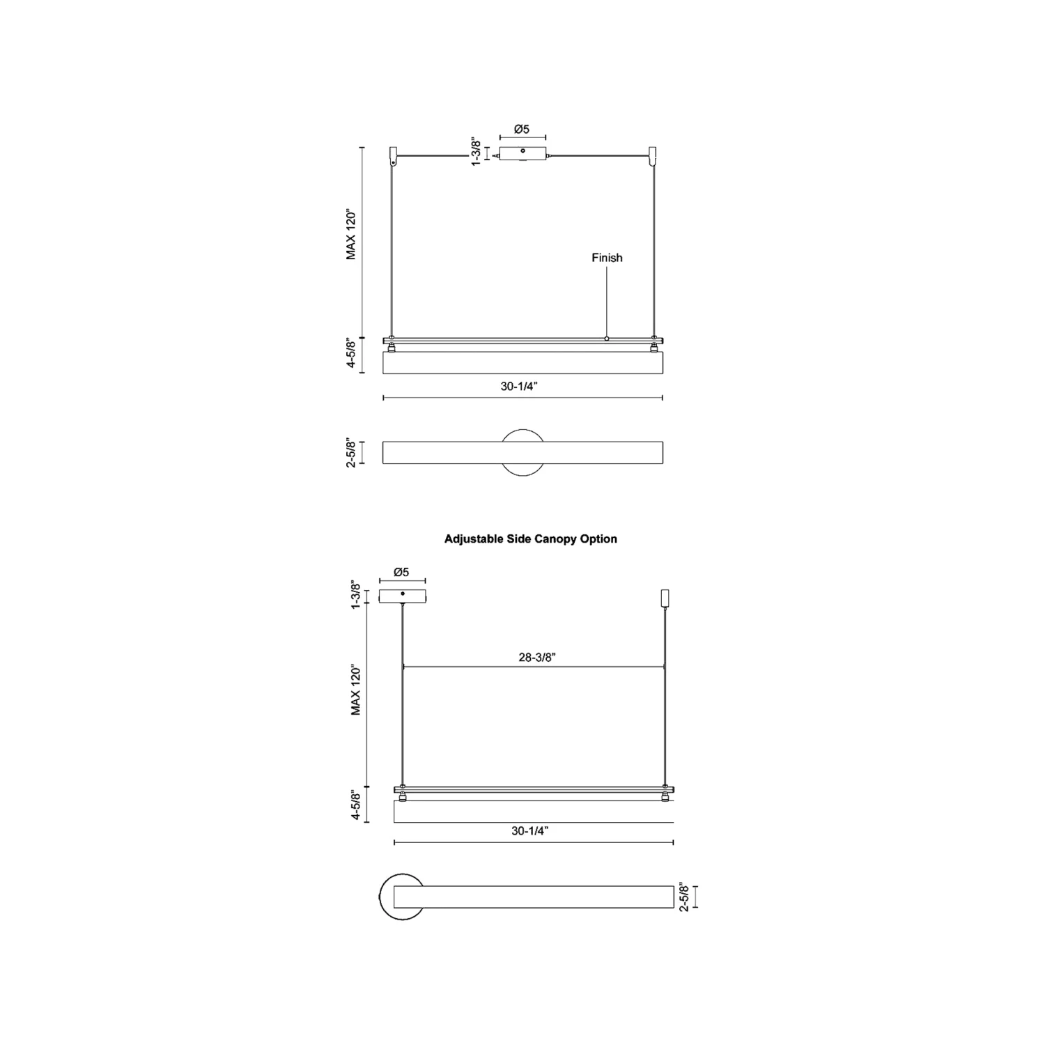 - Small: 30.25″W X 4.63″H; 126.01″ max height
