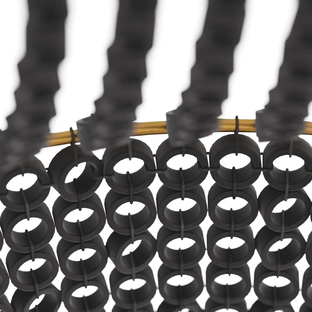 Exotic with a Boho vibe, the Hannie Chandelier from Arteriors delivers the goods on charm and silhouetting. Perk up a custom space with a dynamic fixture perfecting shape and taking advantage of industrial inspiration while presenting an artisan look. Hand-carved circular beads drape and lie flatly over sections and tiers of a complicated yet statement-making frame, allowing soft illumination to escape and create intriguing lighting effects.