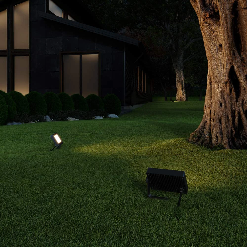 Create a broad glow of illumination with this Horizon Outdoor LED Flood Light from DALS. Smart home compatible, it delivers a full color spectrum and pure whites, with control and dimming through the Dals Connect app. Can be wall mounted or ground staked to brighten landscaping or add safety in myriad spaces.