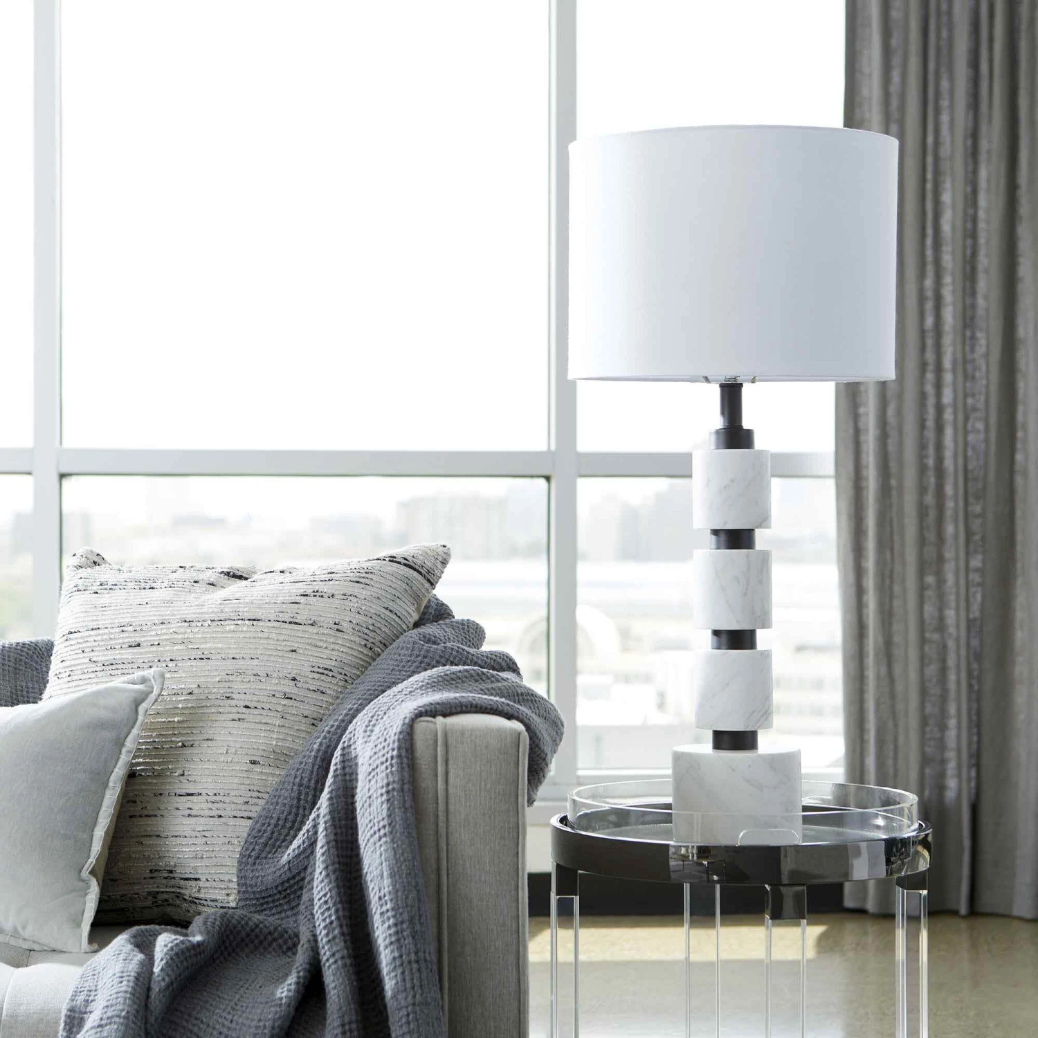 This table lamp’s elegant design adds a luxurious element to any space, with its marble base and gunmetal finish accents. Incorporate this piece’s brilliant, classic appeal by adding it to your living room or entryway ensemble. The one-light, three-way socket design coupled with a crisp, drum linen shade, make the Hydra table lamp a perfect option for illuminating any home or commercial space.