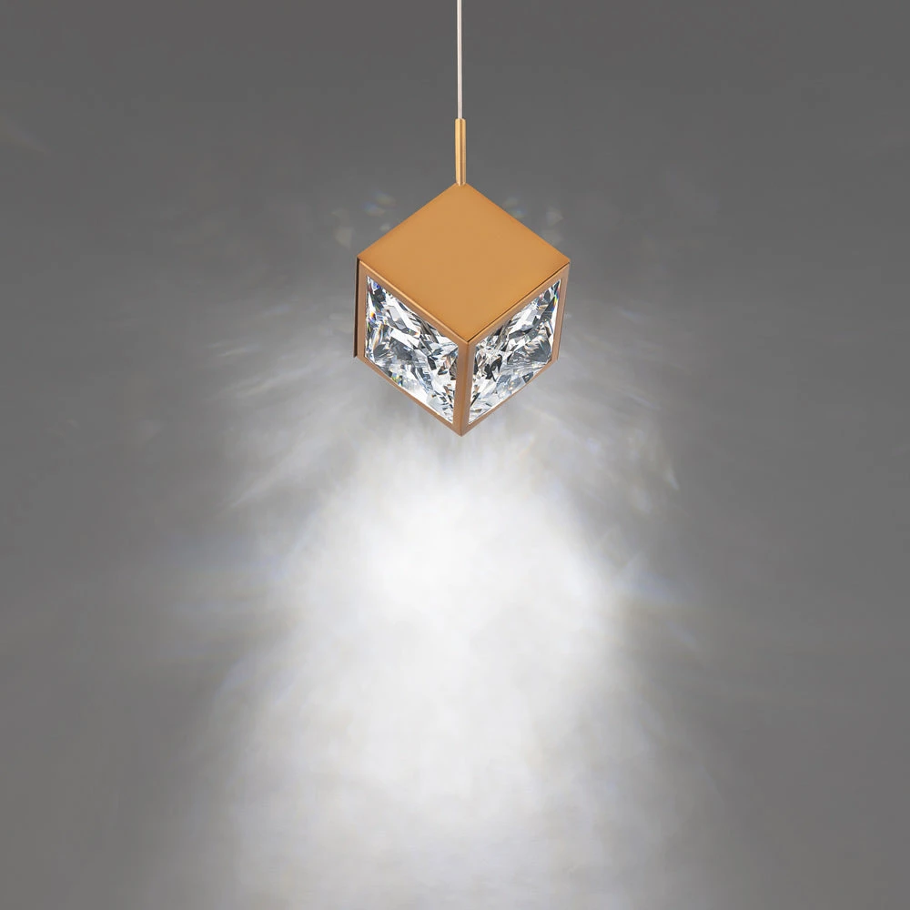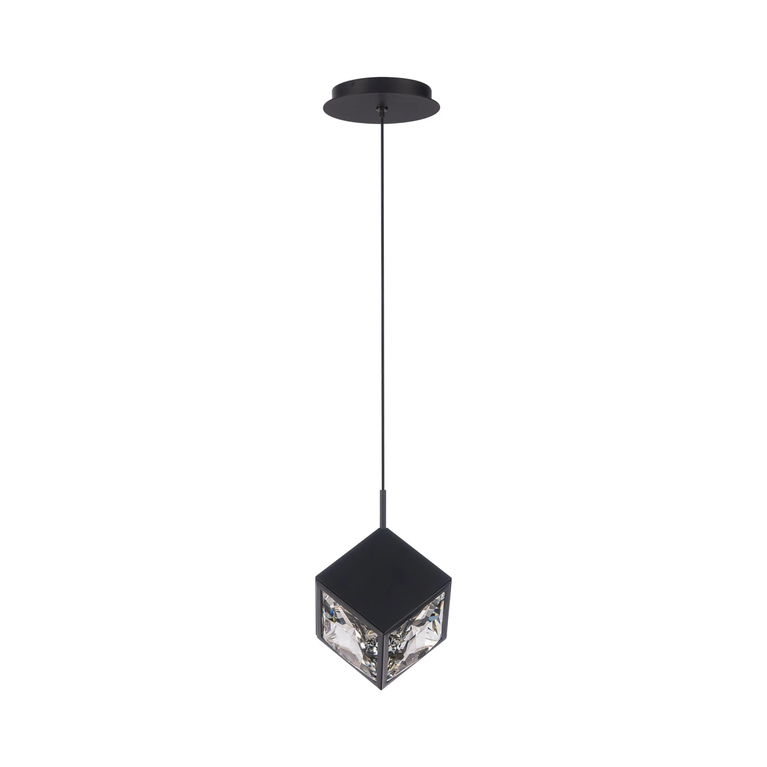 Indulgent modern sophistication creates a cool look with custom features ideal for an upscale contemporary space. The Ice Cube LED Mini Pendant Light from dweLED dangles an openwork steel cube frame nestling a K9 crystal diffuser and delivering a frosty elegance. Add essential ambient and accent lighting to a compact space with this energy-efficient fixture.