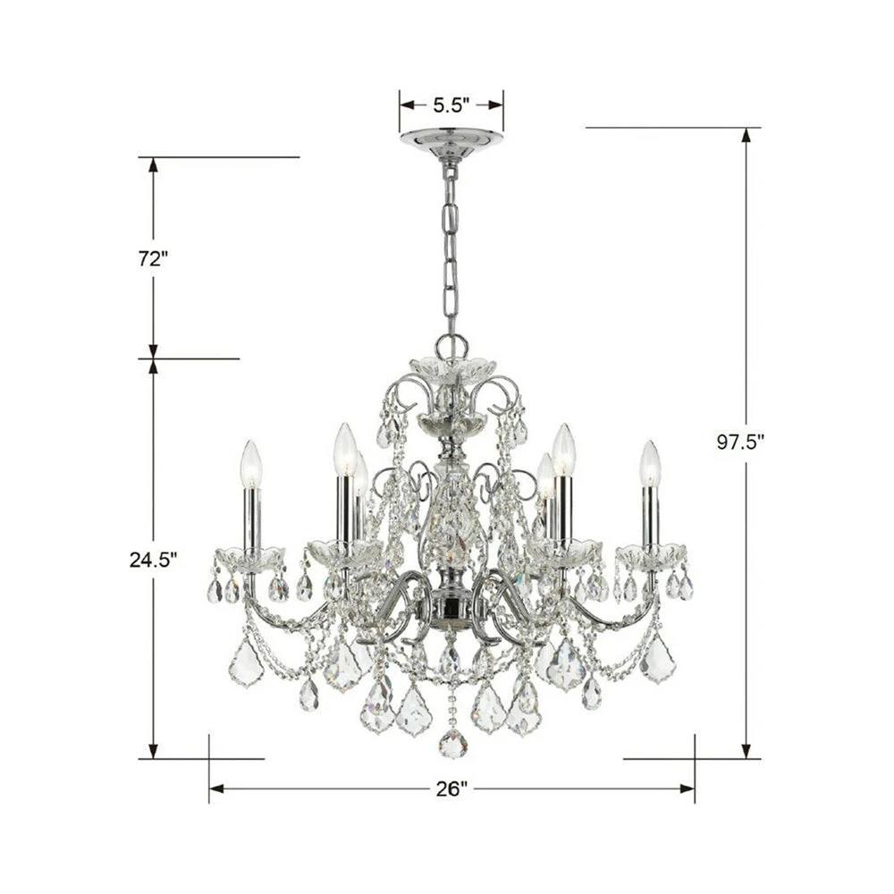 Immerse attention to a fully glam flavor as the Imperial Chandelier from Crystorama reflects the best of traditional artisan lighting. Decadence rules the day as this shapely light fixture and its polished chrome finish metal framing spares no expense in adding graceful curves as well as sparkling crystal drops that catch and reflect soft illumination. With a touch of vintage charm, this exquisite chandelier is surprisingly versatile.
