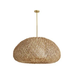 A soothing island influence follows the alluring shape and natural charm of a light fixture that embellishes a casual space. With coastal inspiration and plenty of versatility, the Ingrid Pendant Light from Arteriors features strips of natural rattan woven in a creative manner. An inner white linen shade helps diffuse illumination, delivering soft, romantic illumination.