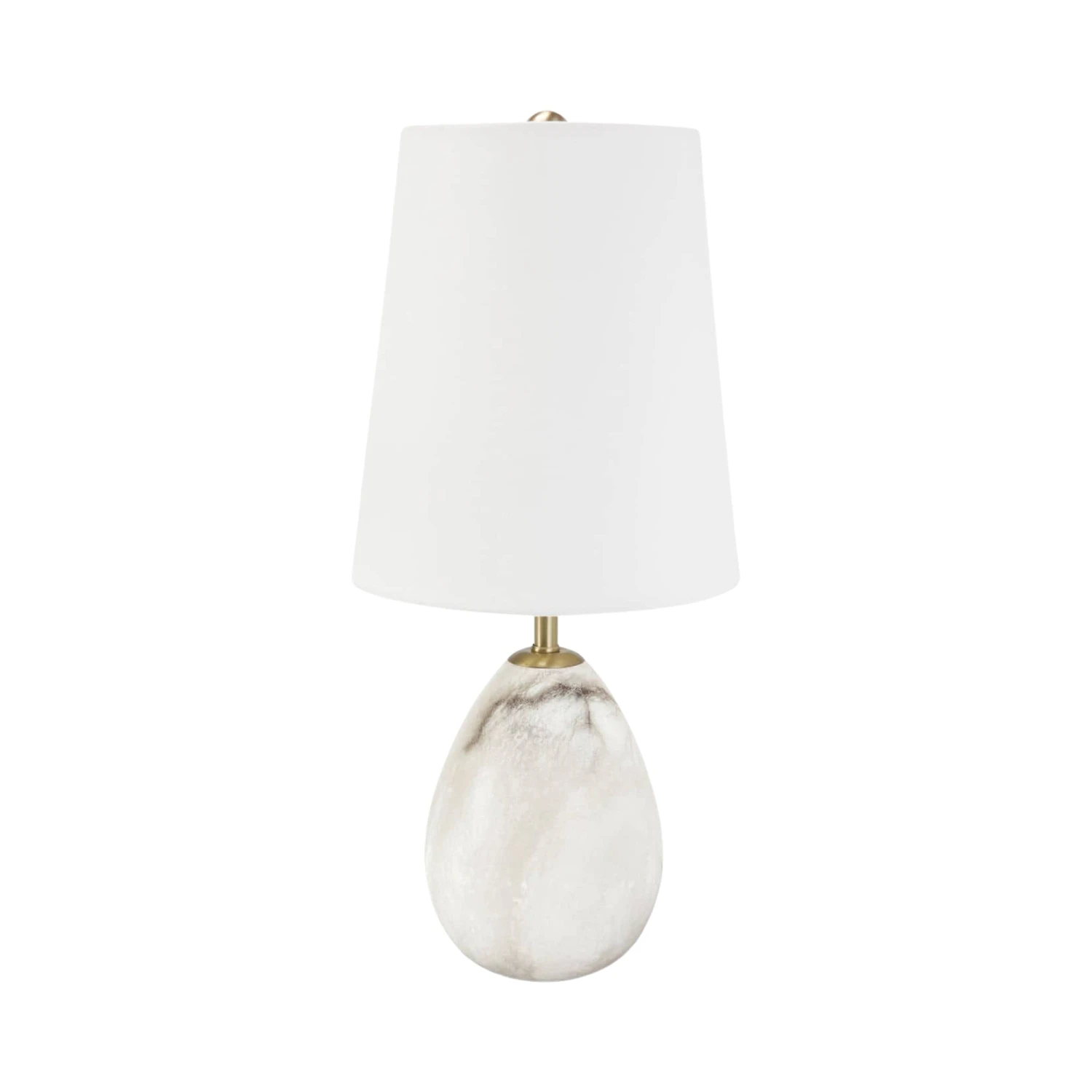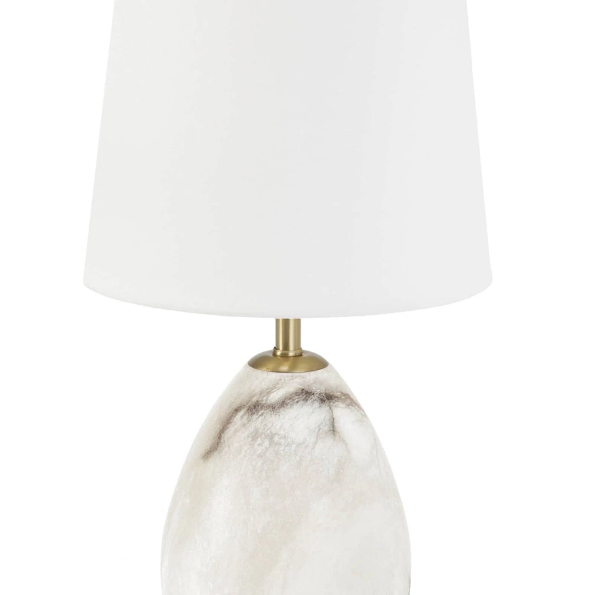 Organic elegance captures the artisan design of the Jared Table Lamp from Regina Andrew, a decadent yet versatile light source that makes itself at home in modern bedrooms and living spaces. Alabaster shapes a teardrop body, compelling and nature-filled, with veining reinforcing an earthy motif. Crowned with an elongated tapered shade, this lamp embellishes bedside nightstands or end tables in style.