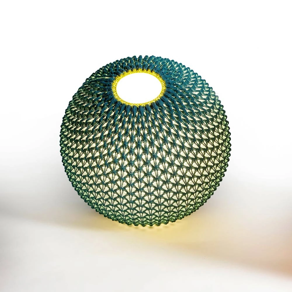 Capture the essence of sculptural, tactile lighting with the instantly appealing Knitted Free Floor Lamp from Ariel Zuckerman. It’s spherical in silhouette, wrapped in a knitted overlay that diffuses illumination and creates exquisite craftsmanship. This striking floor lamp is sure to enchant in any setting.