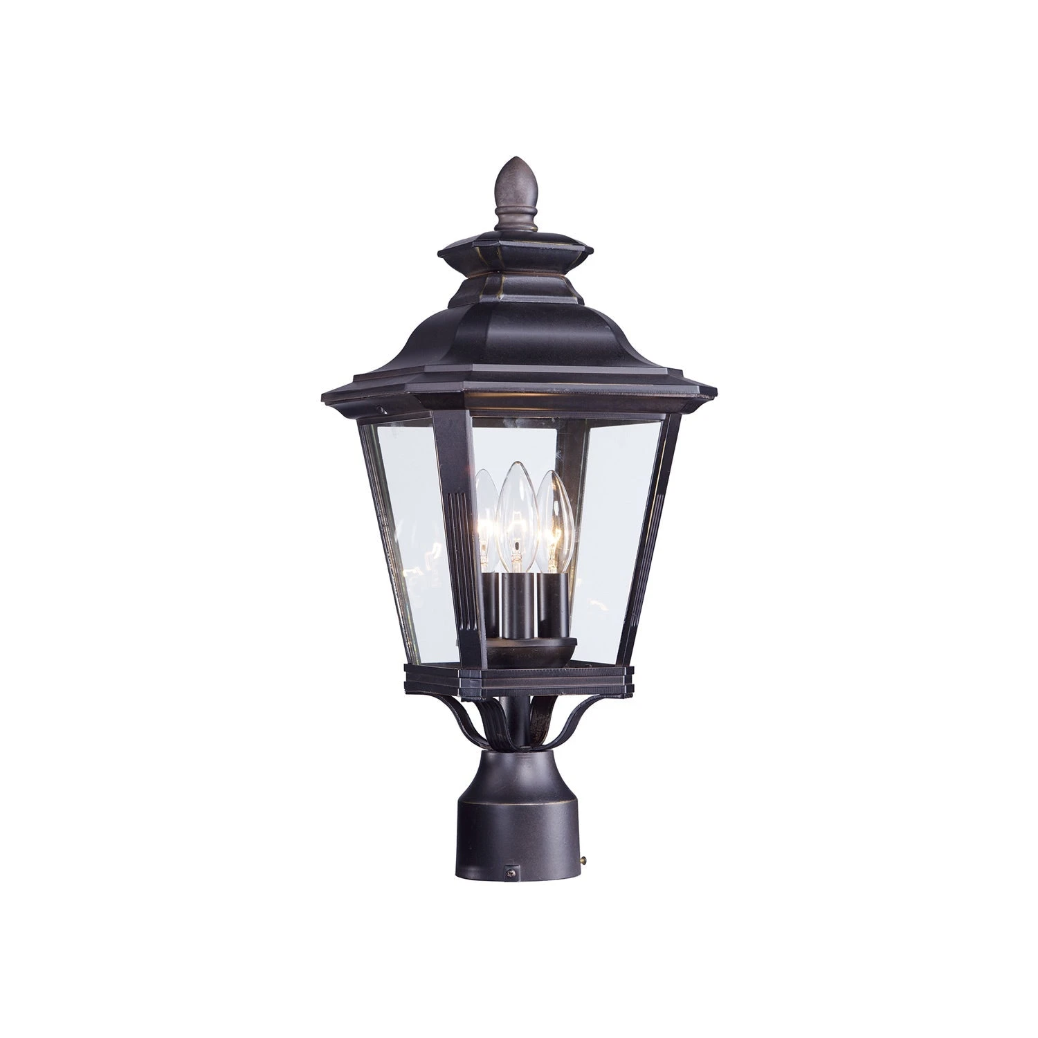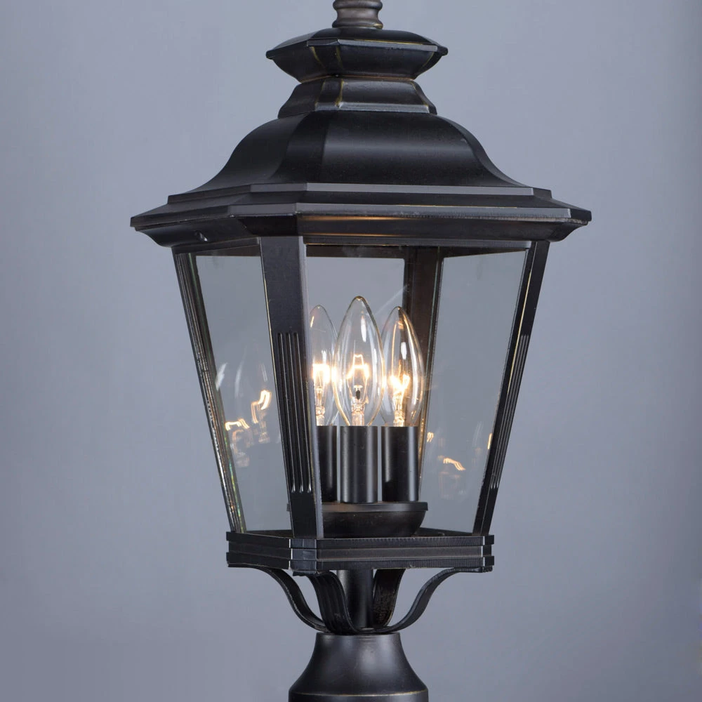 Cap walkway paths with the charming traditionalism of the Knoxville Outdoor Post Light from Maxim Lighting. Its tapering lantern silhouette features classic decorative details with glass panels for excellent light diffusion and curb appeal. Perfect for garden walkways, front entries, and anything else you can imagine.