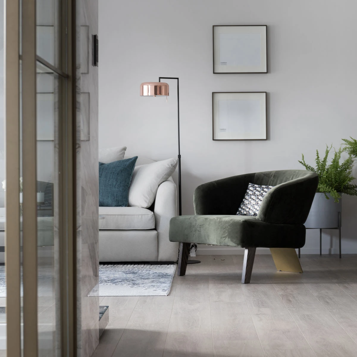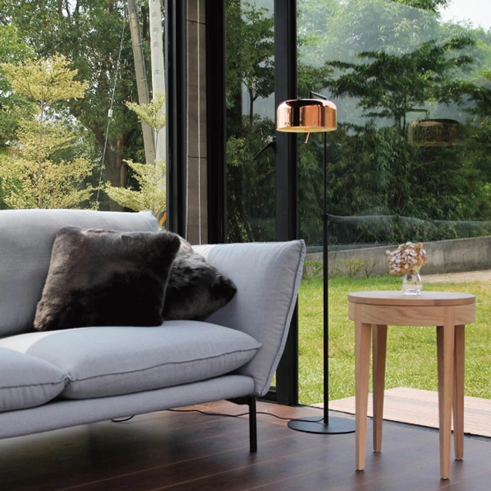 Purposely petite and stylish, the Lalu Floor Lamp from Seed Design reflects a hybrid modern and industrial aesthetic. Metal and steel construction produces a vintage feel with a downscaled disk shade and angled mount body.