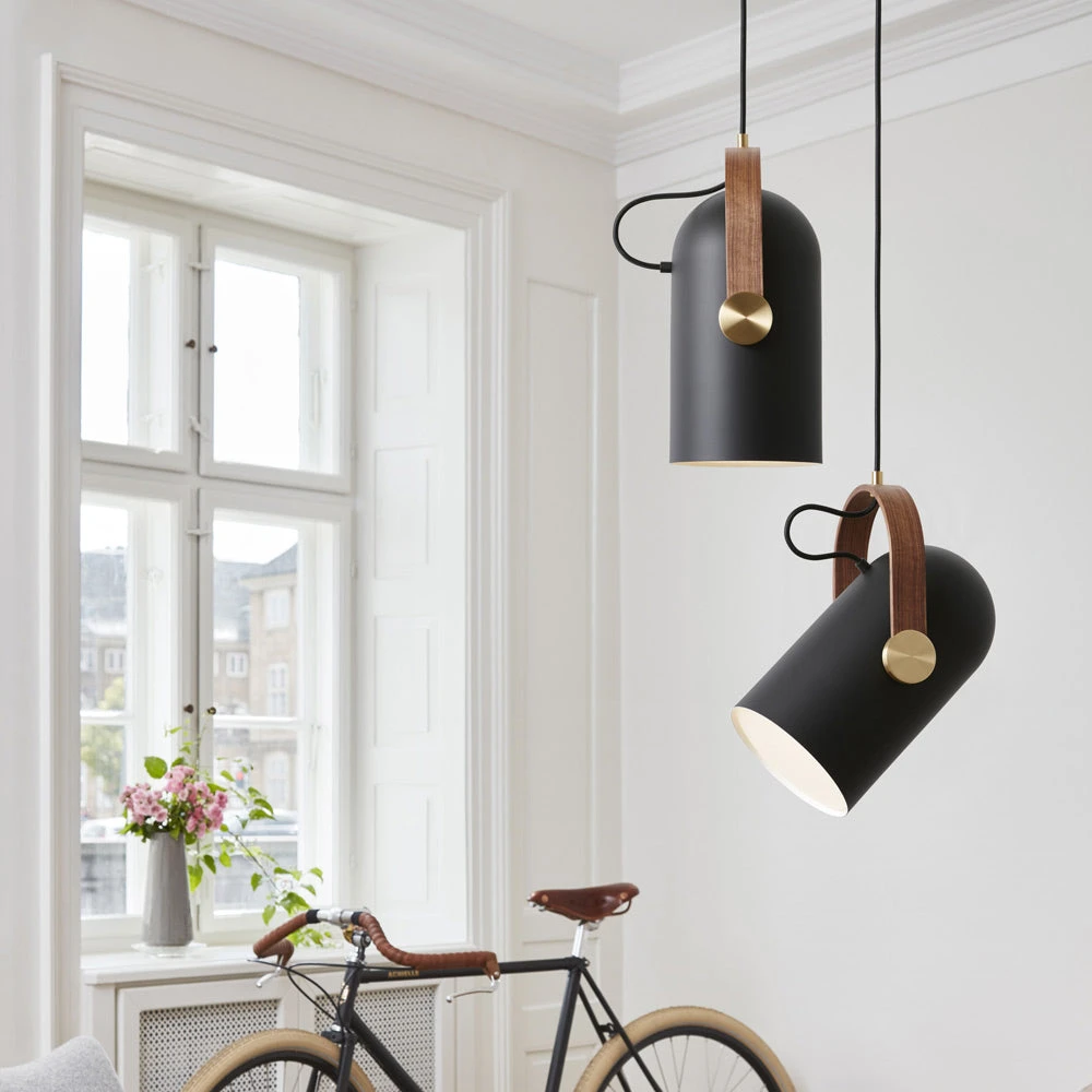 The Carronade Spot Pendant Light from Le Klint works fashionable industrial style into a modern setting. Careful design work blends a long domed shade with strappy accents and metal details, adding the inspiring studio motif to a contemporary living room or foyer.
