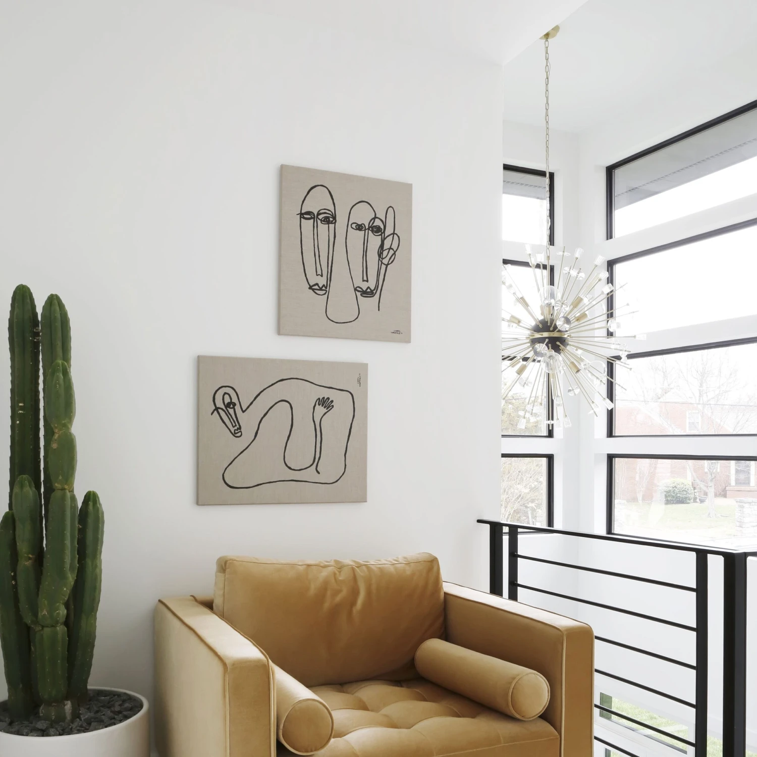 Liberty Chandelier starts with a core of matte-black metal, banded round its middle with a flashing contrast from the piece’s finish of choice—brass or nickel. Retro coil bulbs in ballooning clear glass create the primary light source; in larger models, tubular exposed-filament bulbs alternate. Cut-crystal discs and icy handcrafted glass adorn protruding rods, refracting the dazzling light in a thousand directions.