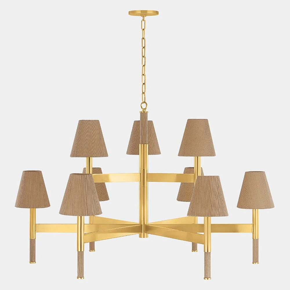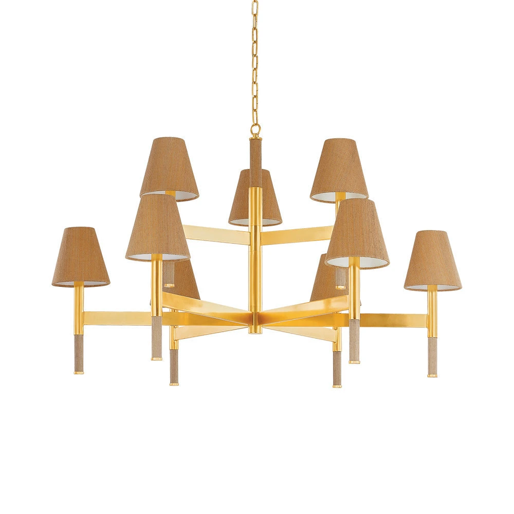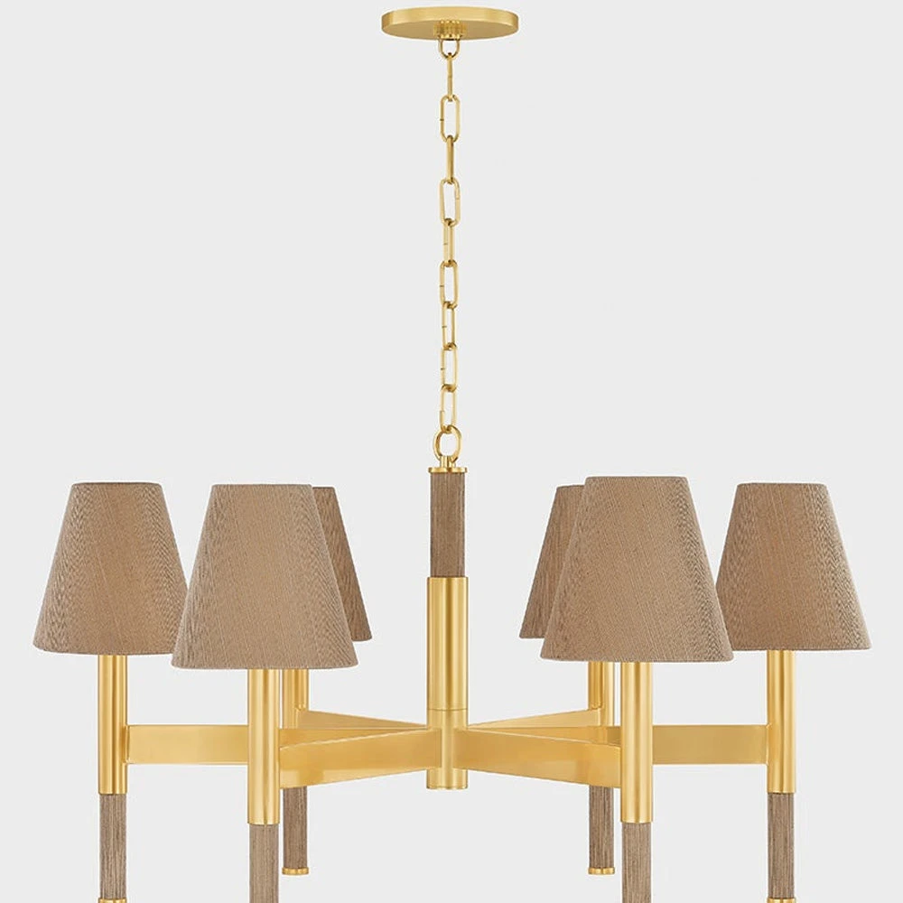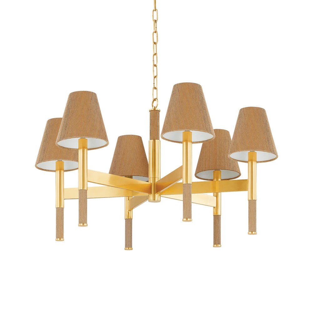 Texture takes center stage in the Lindenwood Chandelier from Hudson Valley Lighting. A strikingly balanced presentation, it features a compelling blend of natural and manmade design elements, complete with a rich aged brass finish that glows with warmth over a foyer, living or dining room.