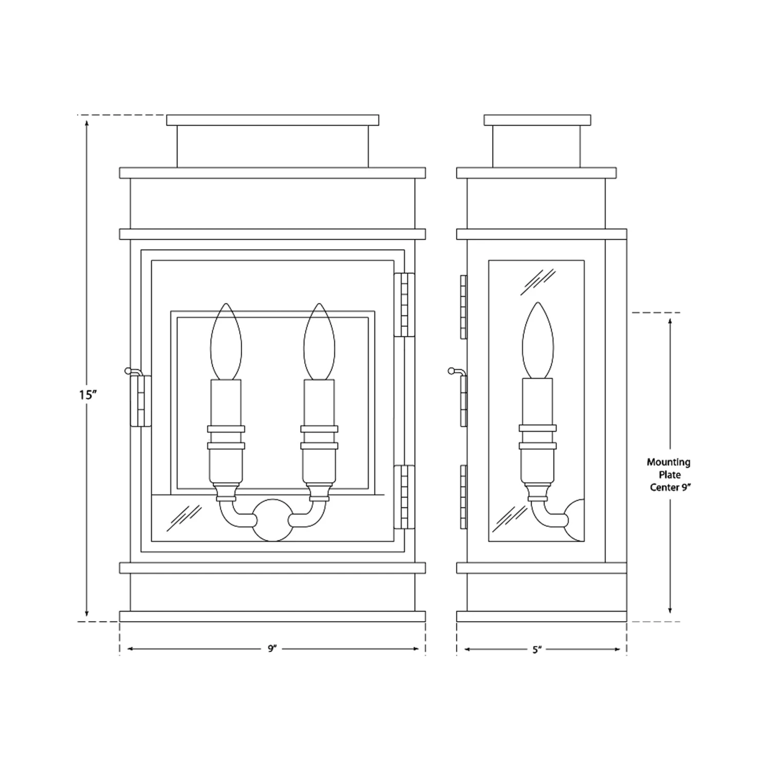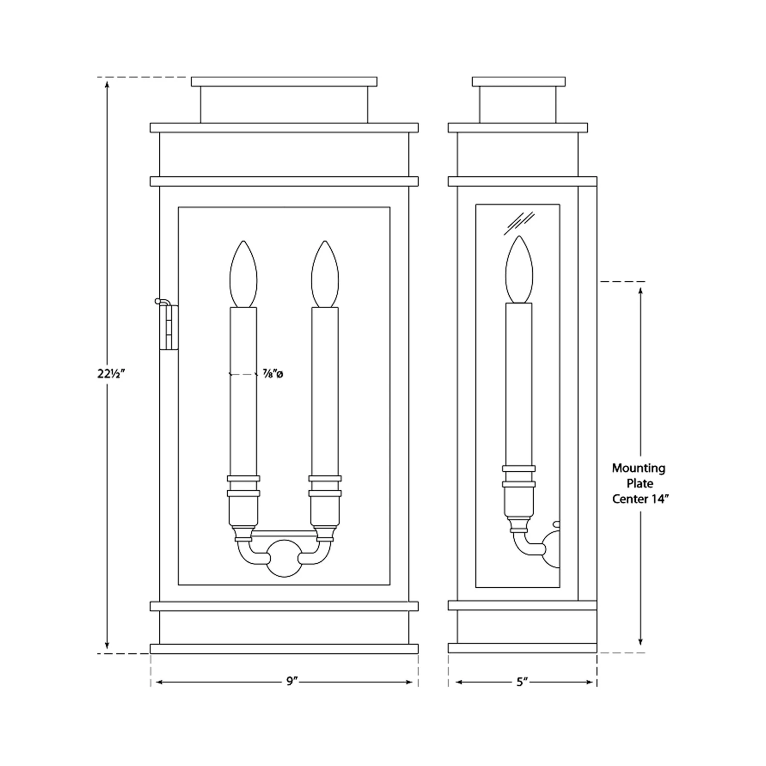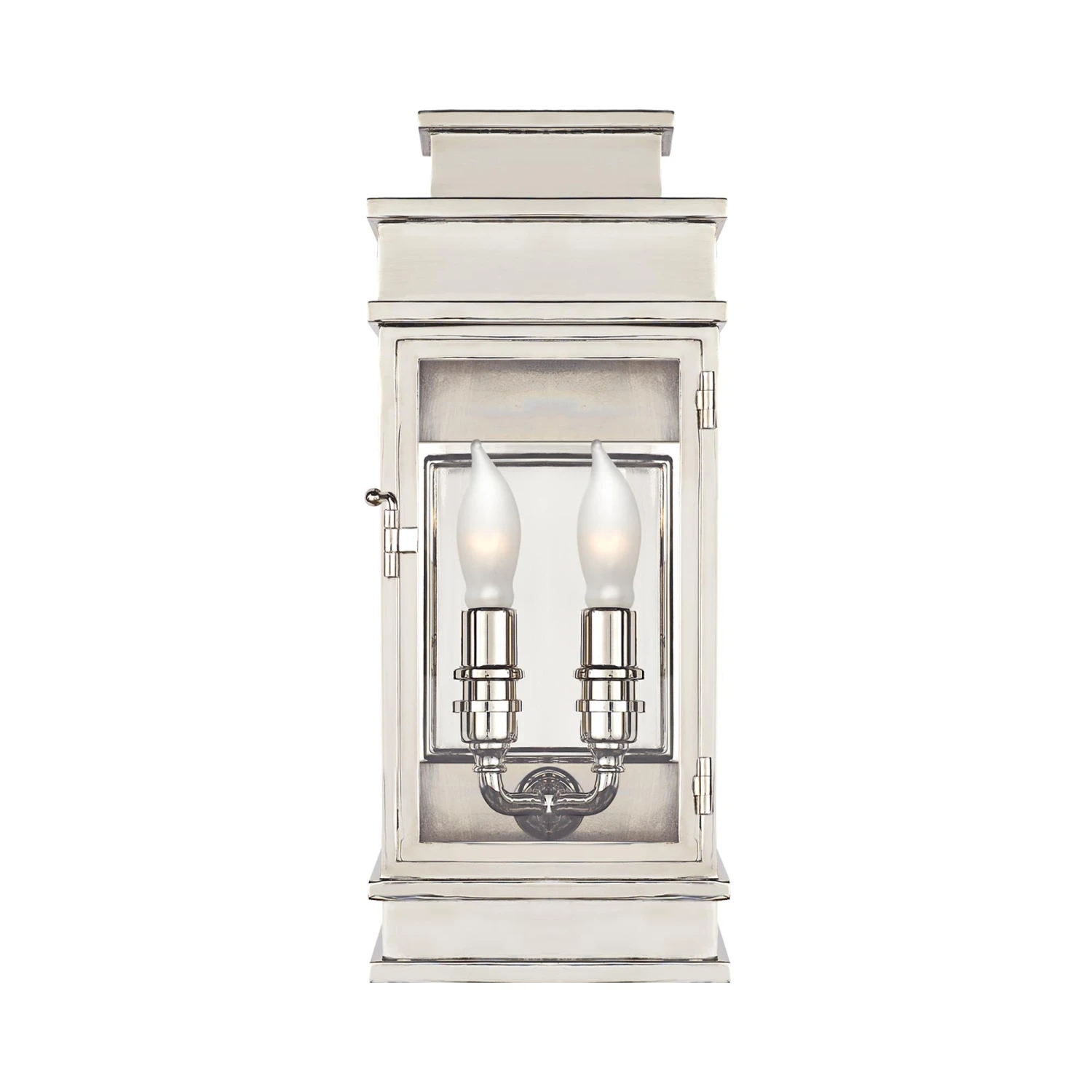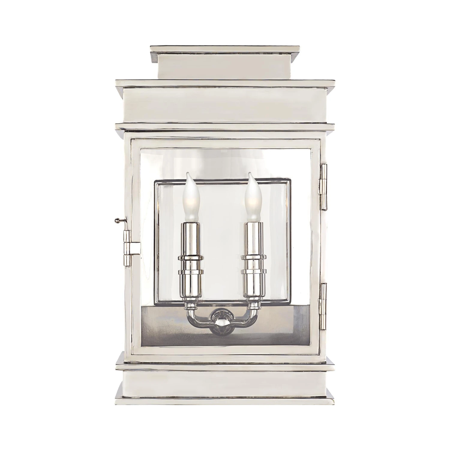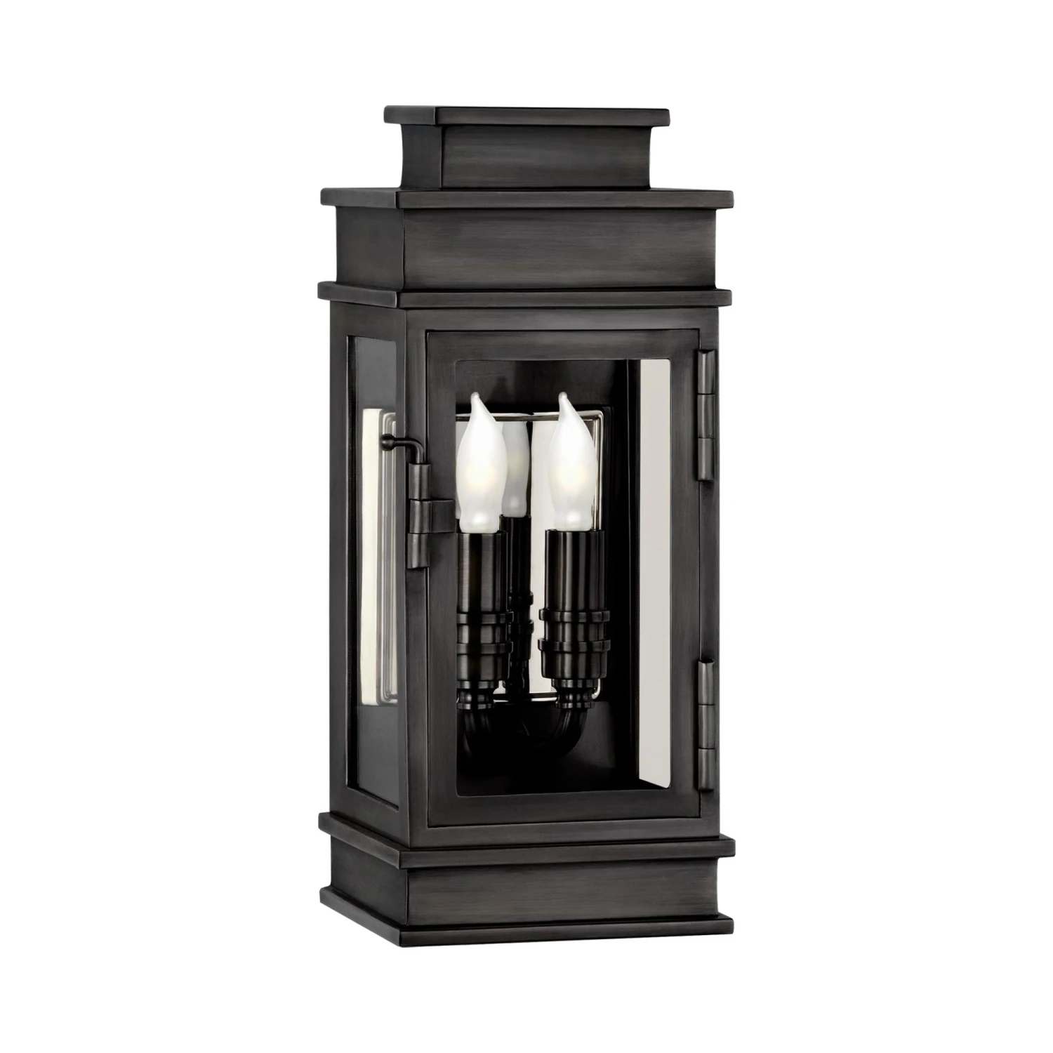Eclectic with a stacked silhouette fashioned to replicate a box form, the Linear Outdoor Wall Light from Visual Comfort Signature delivers a striking look with an abundance of upscale elegance. Metal construction forms a lantern-style design with hinged doors and glass panels offering full view of a stylish candelabra cluster. Definition and dimension drive the style narrative of this fashionable light that lifts the mood of an exterior space.
