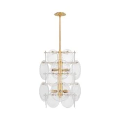 The Loire Barrel Chandelier from Visual Comfort Signature puts detail on full speed while reserving a delicate ambiance and artisan spin. Metal framing with a gorgeous gild finish is dwarfed by chic clear strie glass wafers placed with care to construct an orderly silhouette. Radiant illumination reflects off both the luxe metal and strie glass, magnifying the impact of a sophisticated choice in lighting.