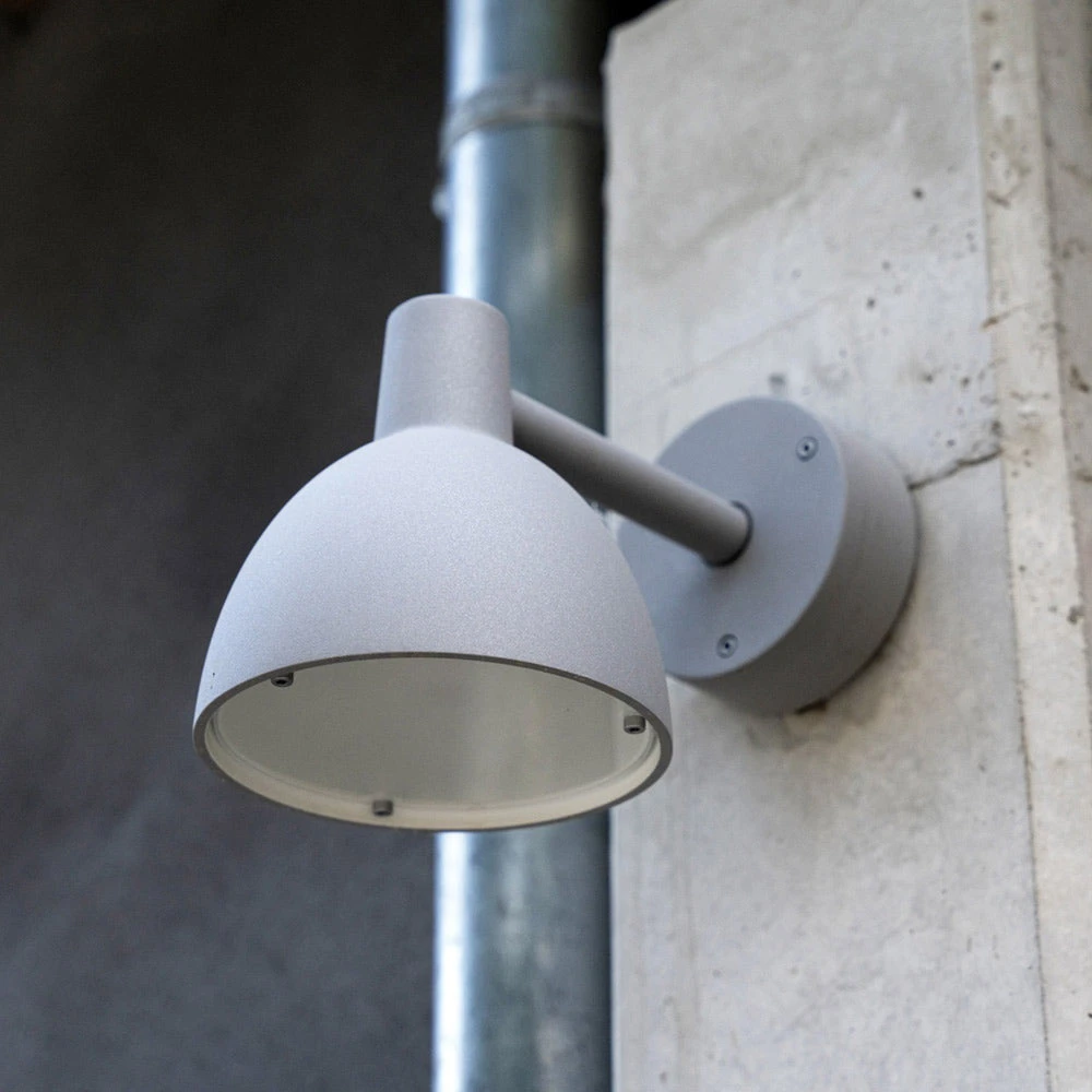 Modern meets classic in the clean profile and familiar design of the Toldbod Outdoor Wall Light from Louis Poulsen. A graceful elliptical shade pairs with a contemporary textured finish to cast a lovely wash of downward illumination across a porch, patio, or outdoor living room.