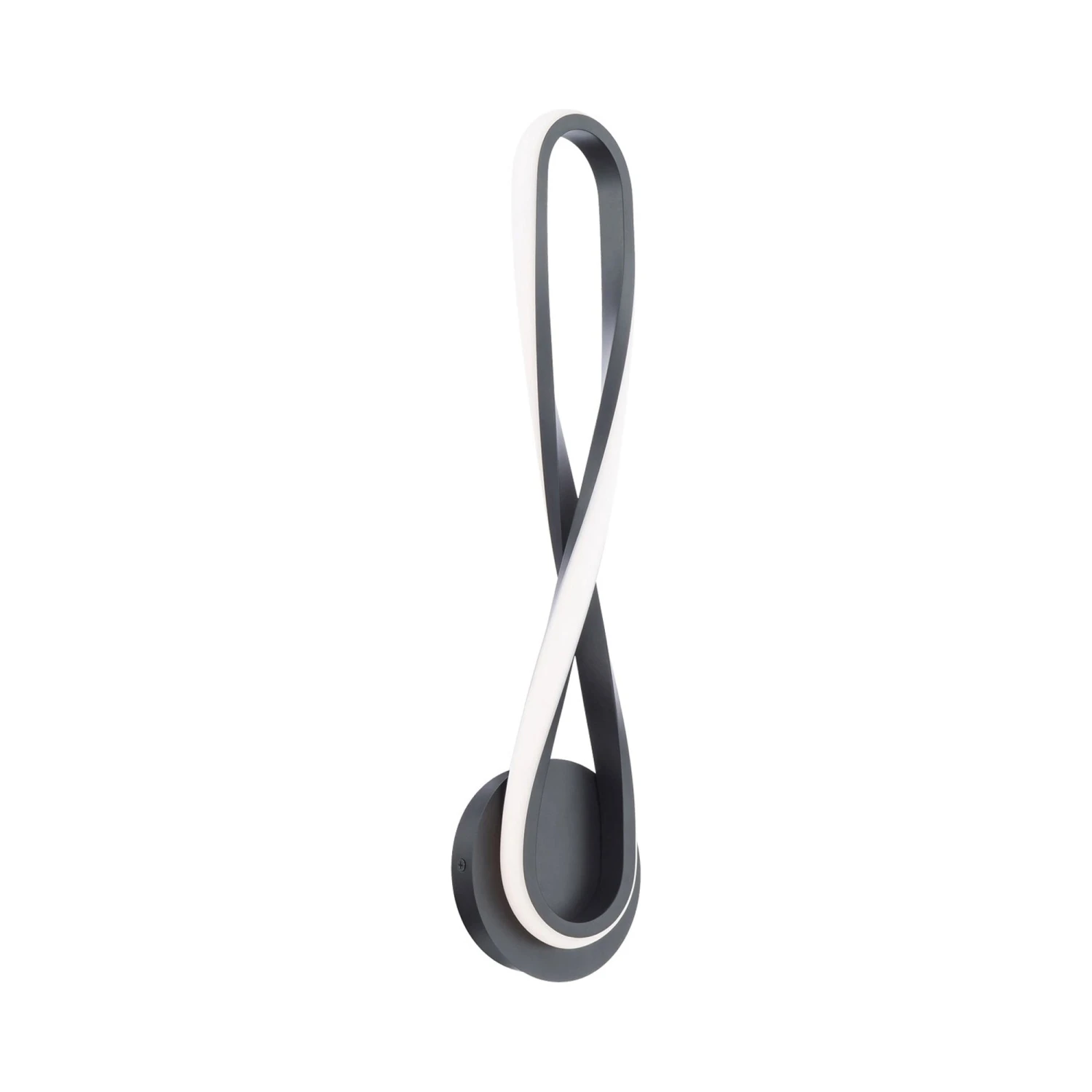 A twisting figure-8 and a round wall plate create a bold, sculpted profile for the ultra-modern Marise LED Wall Light from dweLED.
