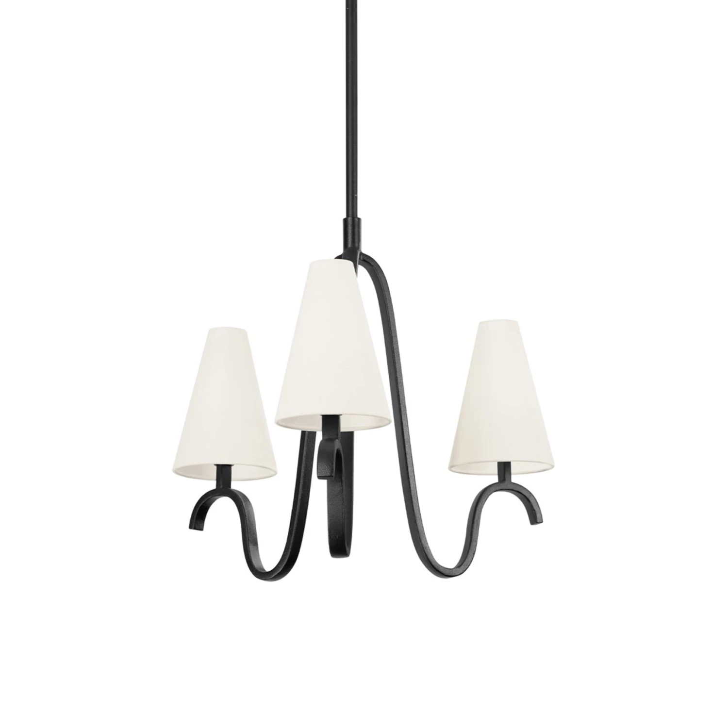 Set the stage for a dynamic lighting element with an industrial motif turning artistic. The Melor Chandelier from Troy Lighting makes a statement with its contrasting palette and alluring freestyle design, highlighting a dining space or entryway with extra emphasis. Embrace a fluid silhouette featuring forged iron metalwork dressed up with artistry, and well-placed traditional off-white linen shades introducing a Euro vibe.