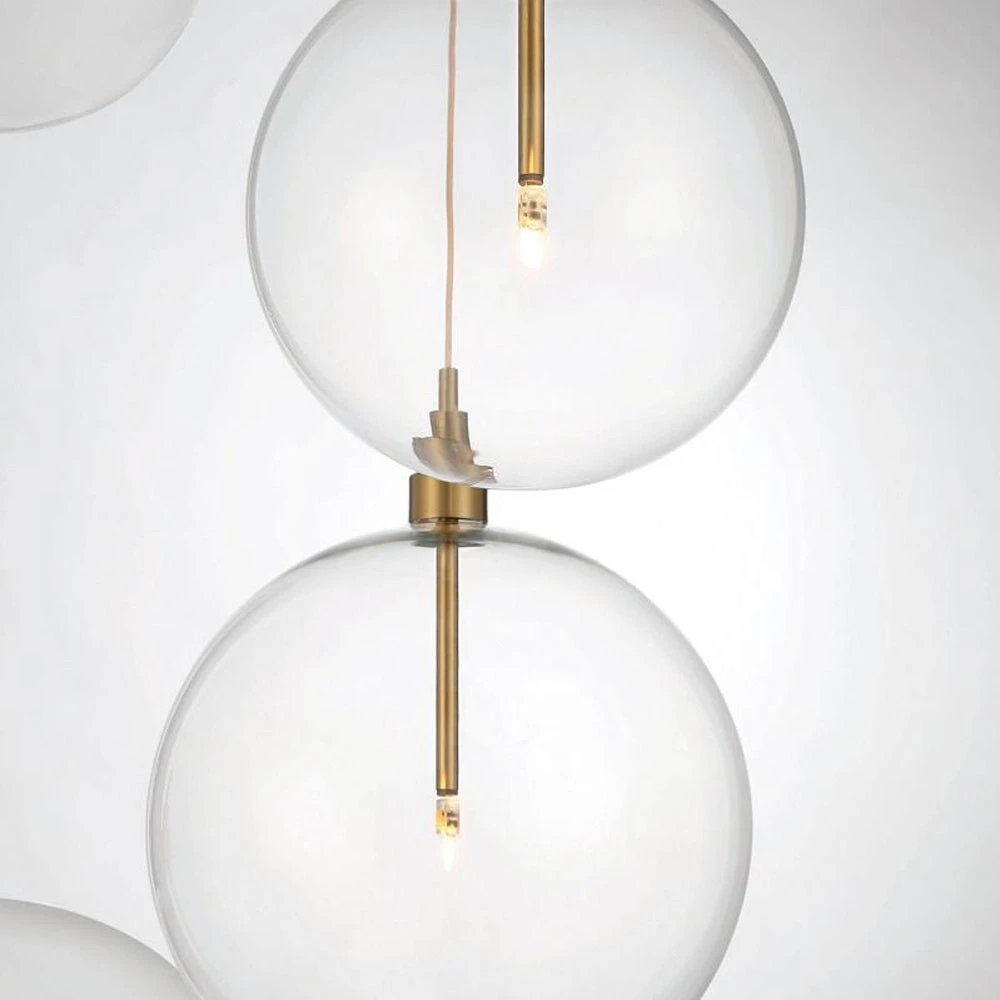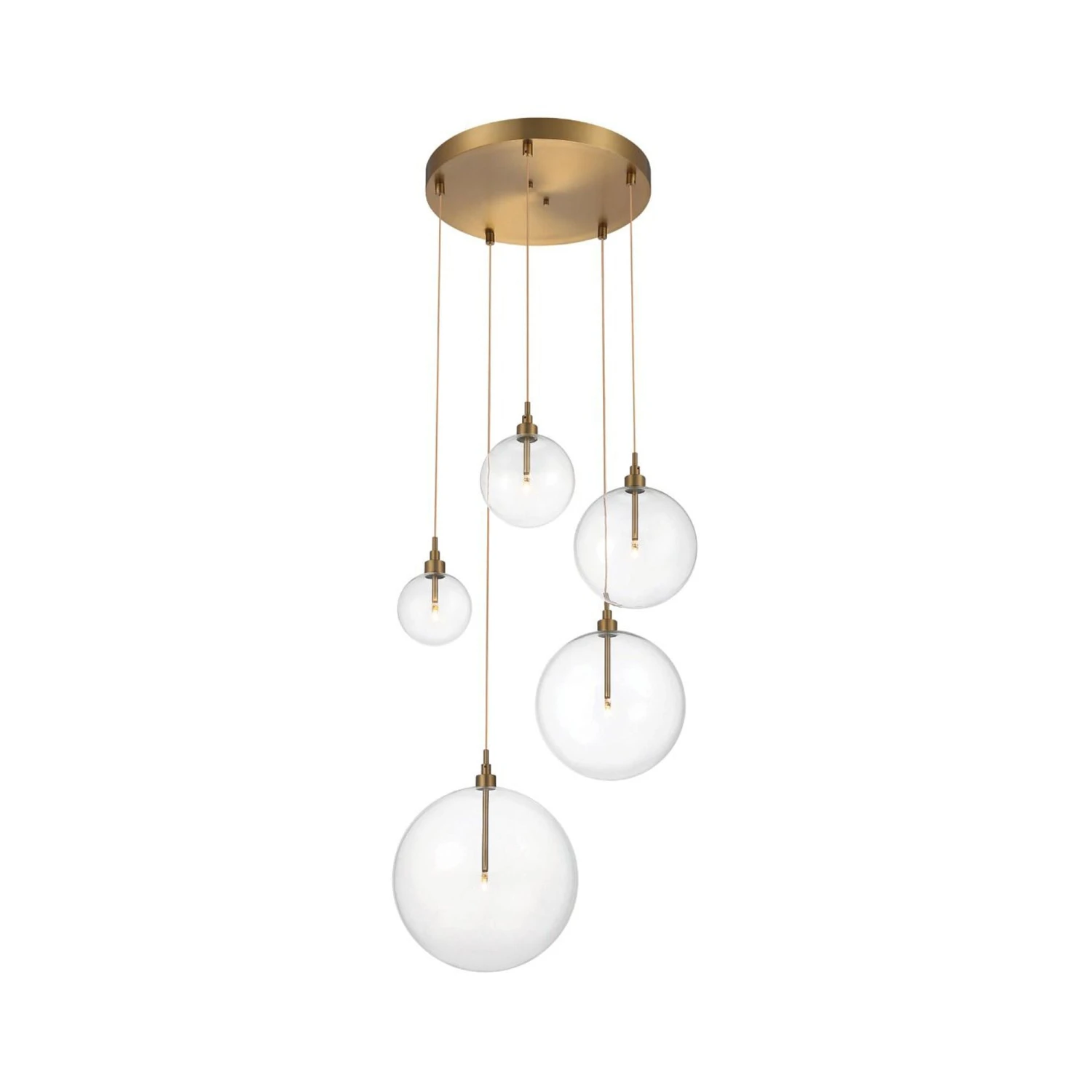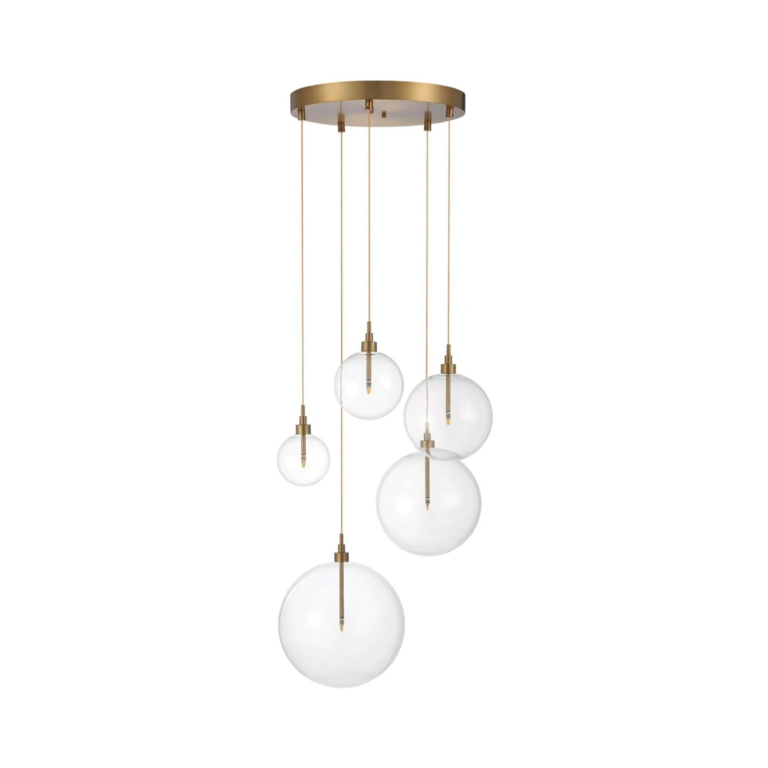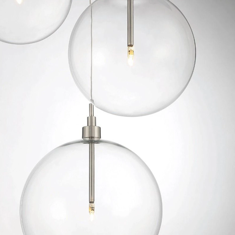 Enchanting design elements offer up a delicate elegance in the Meridian M10099 Multi Light Pendant Light from Savoy House, delivering artisanal glam and sleek sophistication. Gleaming light infuses through multiple sizes of clear blown glass orbs that suspend at graduated heights from a basic canopy, understated to maintain focus on bubble-like shades. Adjust cable heights to achieve a customized configuration.
