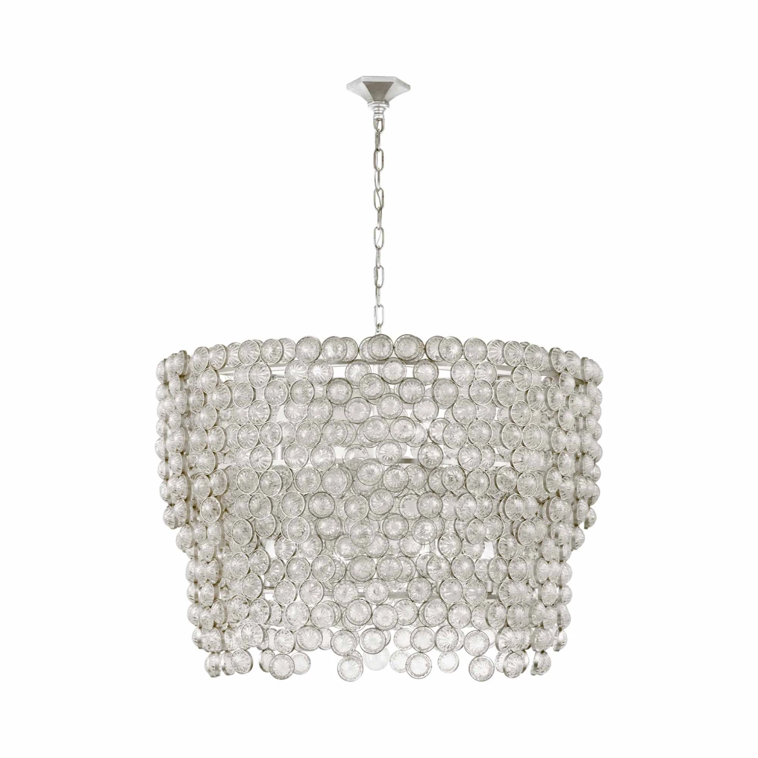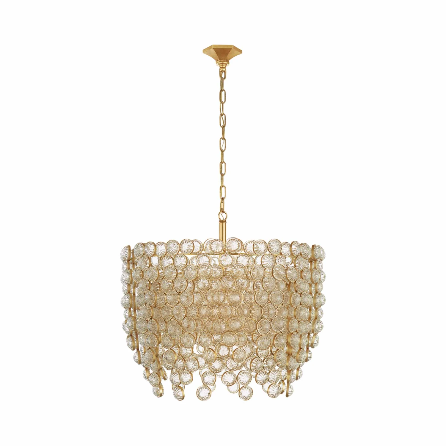 Tendrils of crystal discs create a sparkling, glamorous effect for the Milazzo Waterfall Chandelier from Visual Comfort Signature. A grand addition in a sophisticated living space, this chandelier is a bold, sculptural look that’s sure to capture attention.