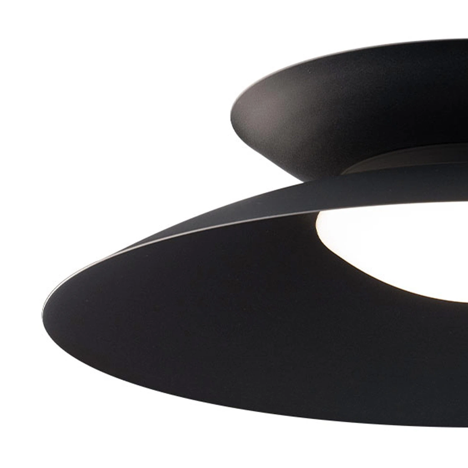 Easy style blends casual retro flavor with geometric design elements, creating the Miso LED Flush Mount Ceiling Light from dweLED. Bold black finish spun aluminum semi-domes connect, giving way to an acrylic diffuser sending energy-efficient lighting downward. Casual and yet striking, this fixture is versatile enough for home offices and living rooms.
