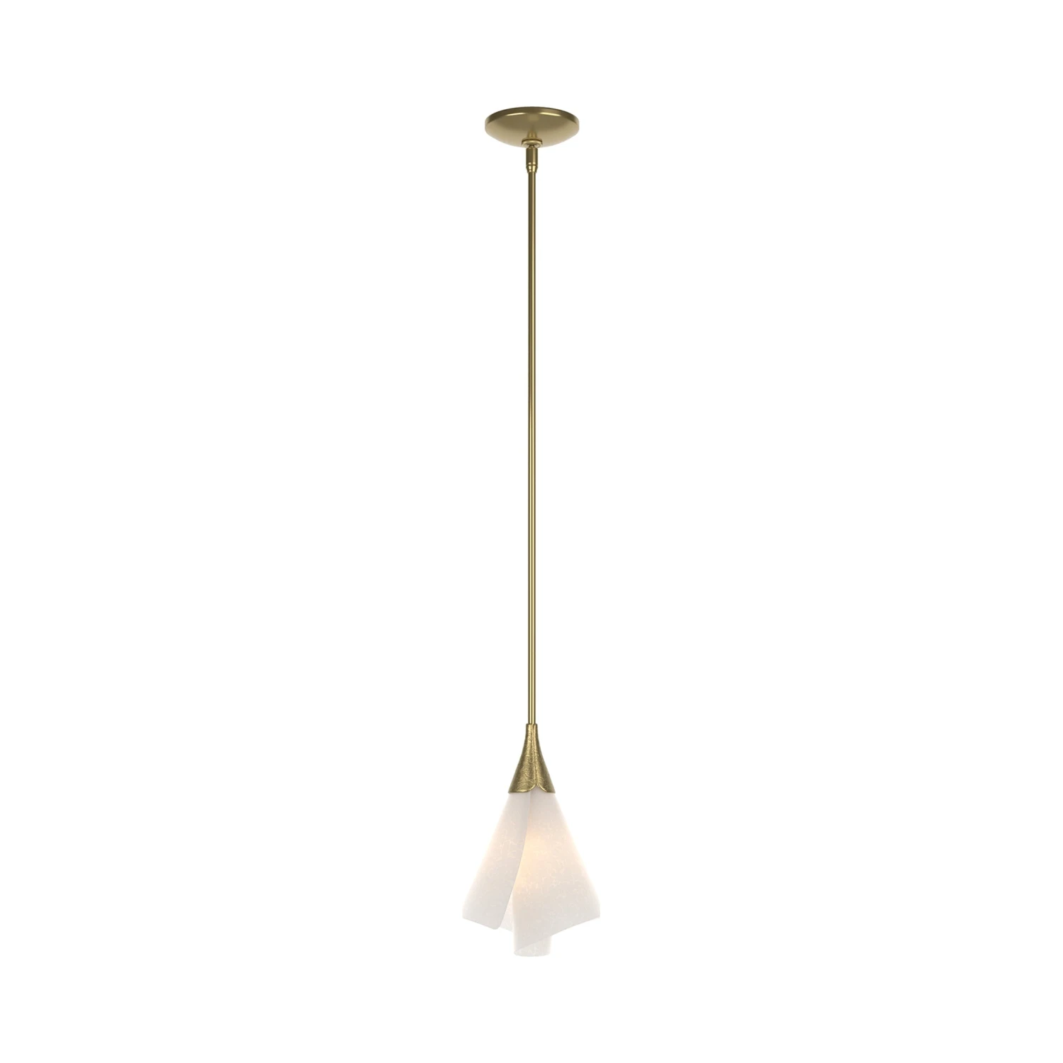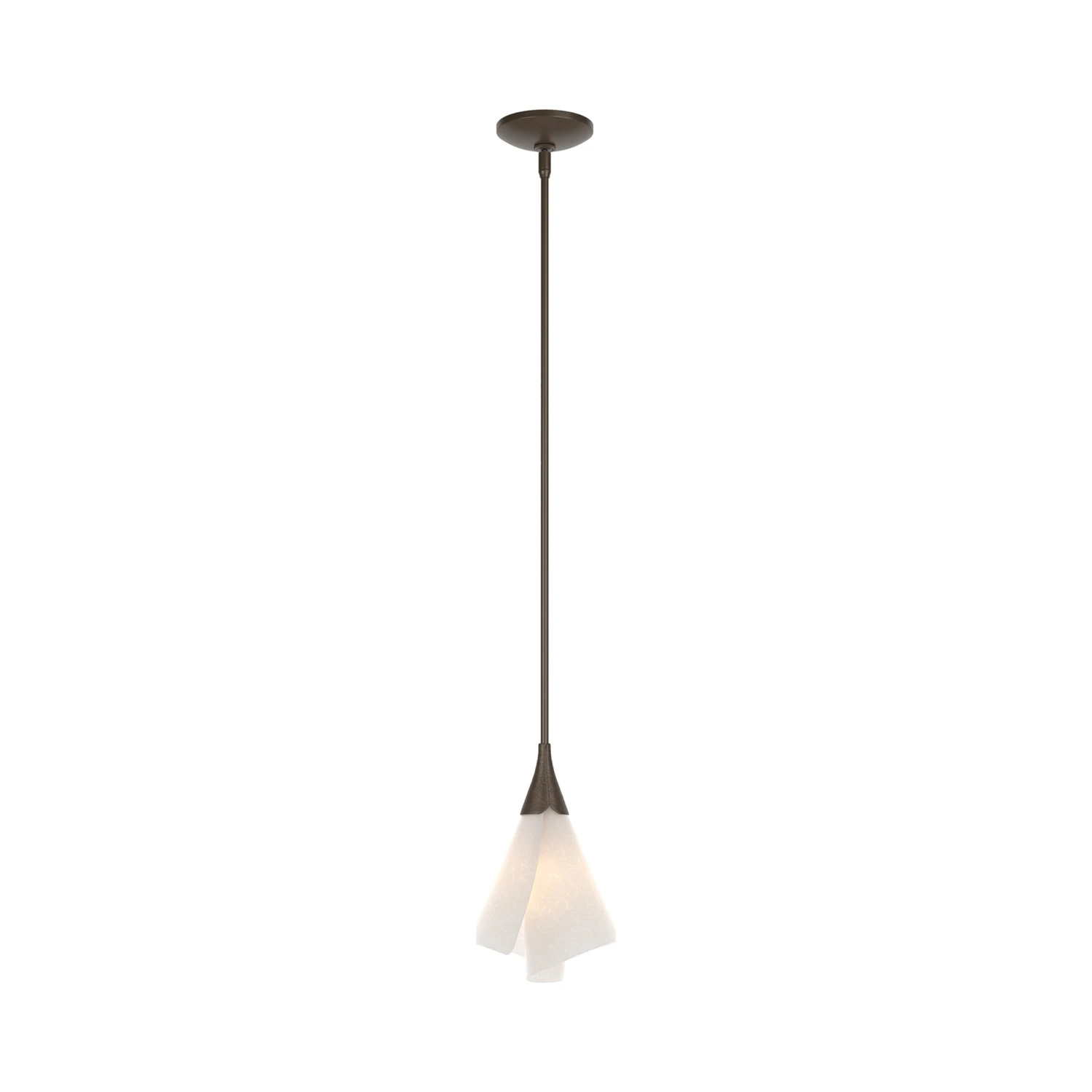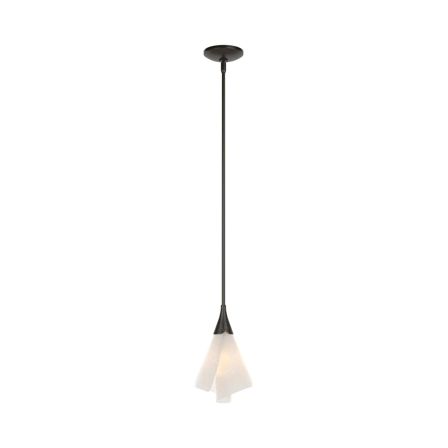 Compact and captivating, the Mobius Single Mini Pendant Light from Hubbardton Forge offers a minimalist twist on botanical beauty. A single curled shade made of spun-frost glass floats beneath a slender suspension, casting a soft, welcoming light. Ideal for layering or making a subtle statement.