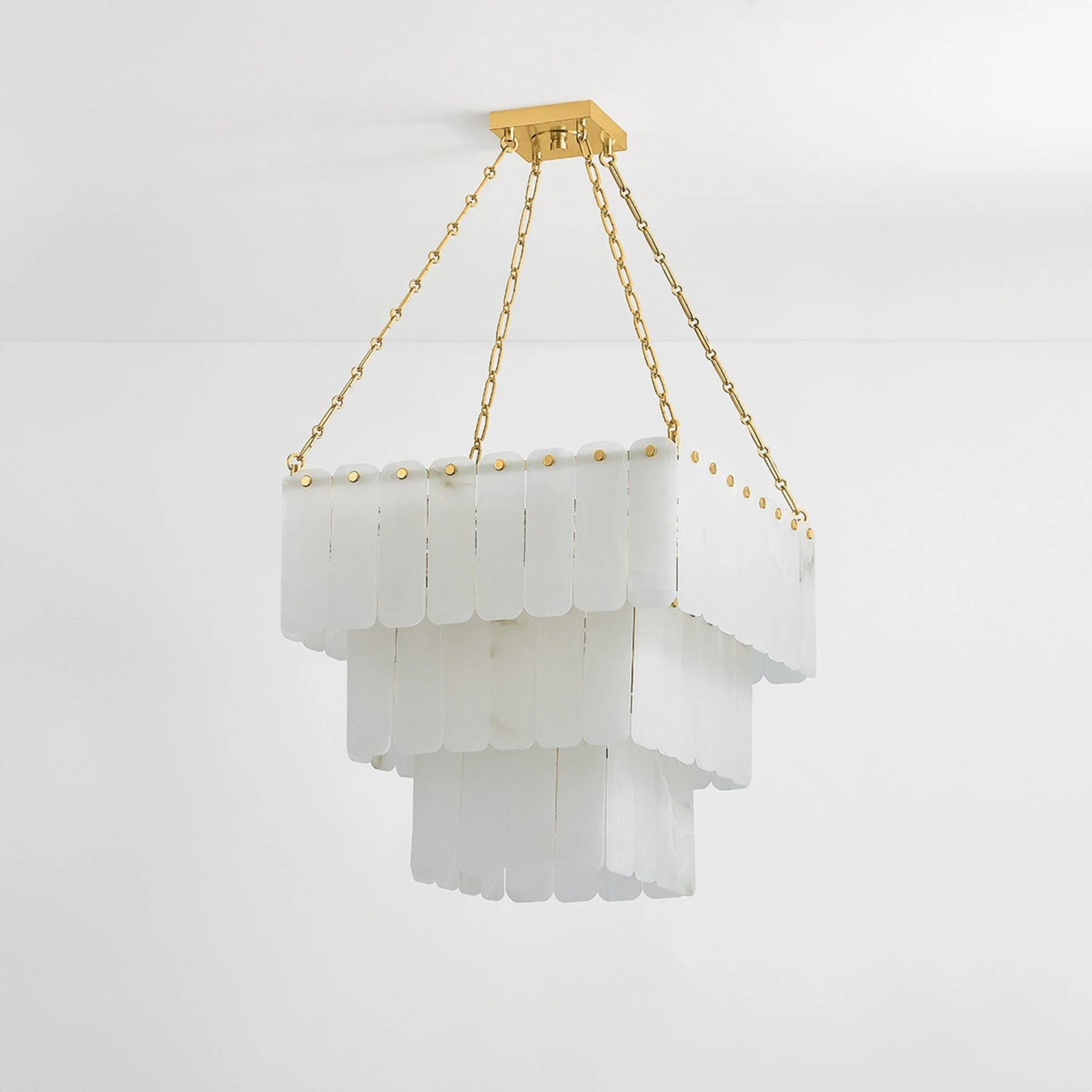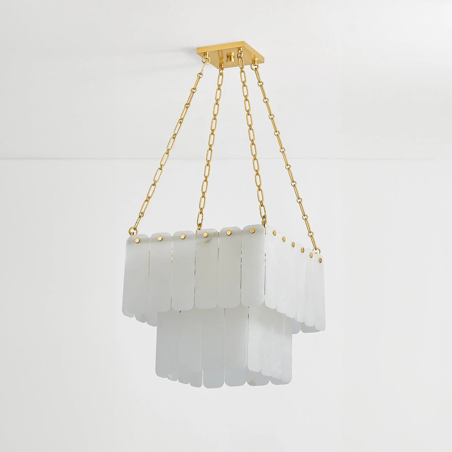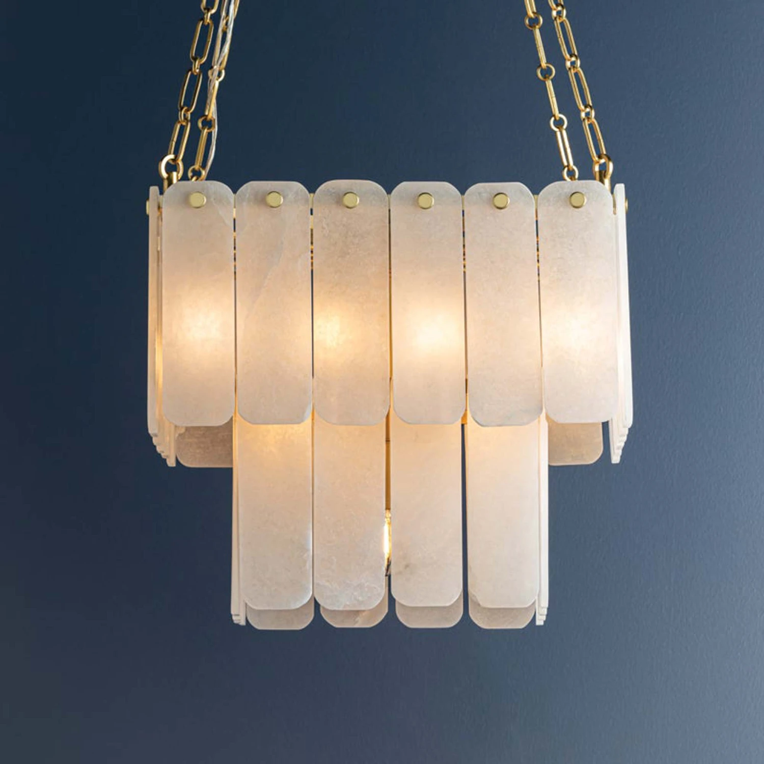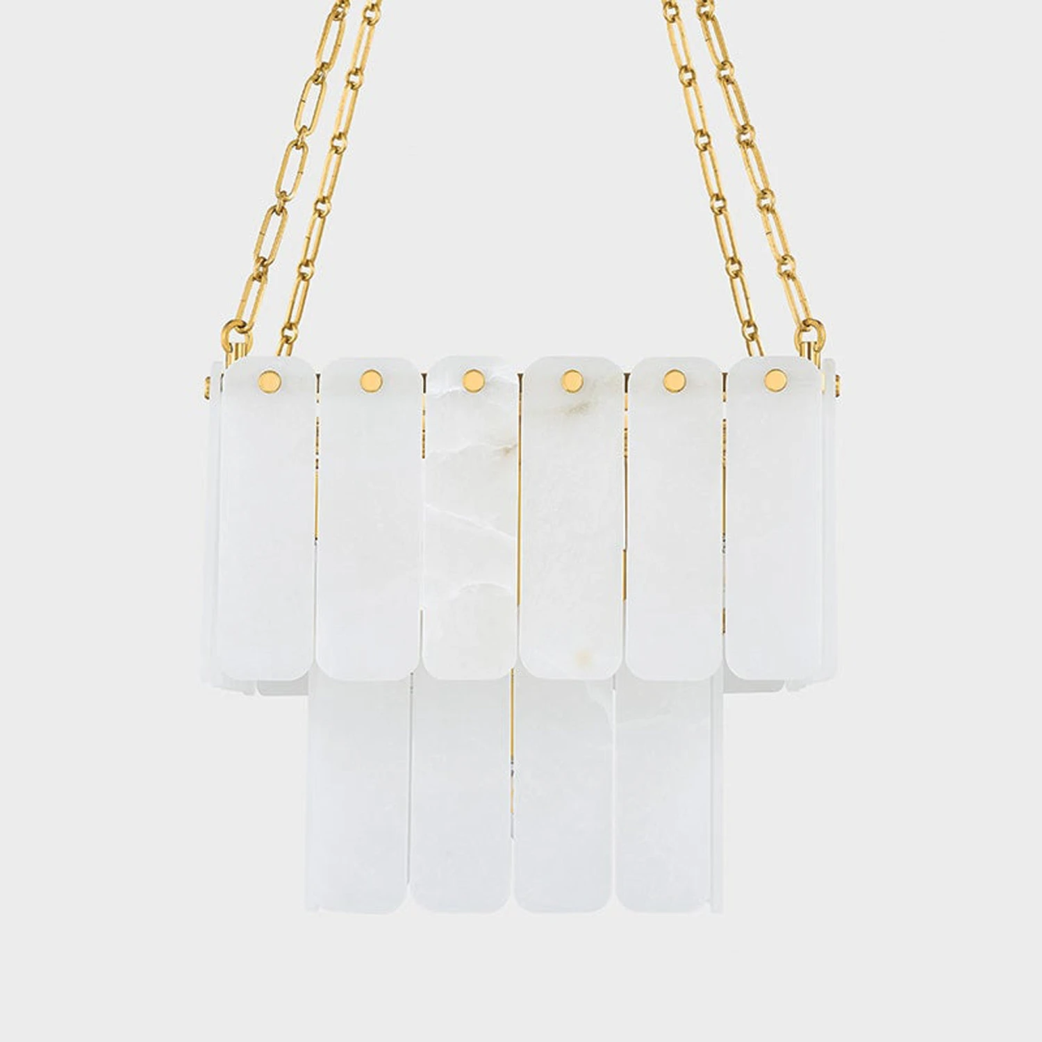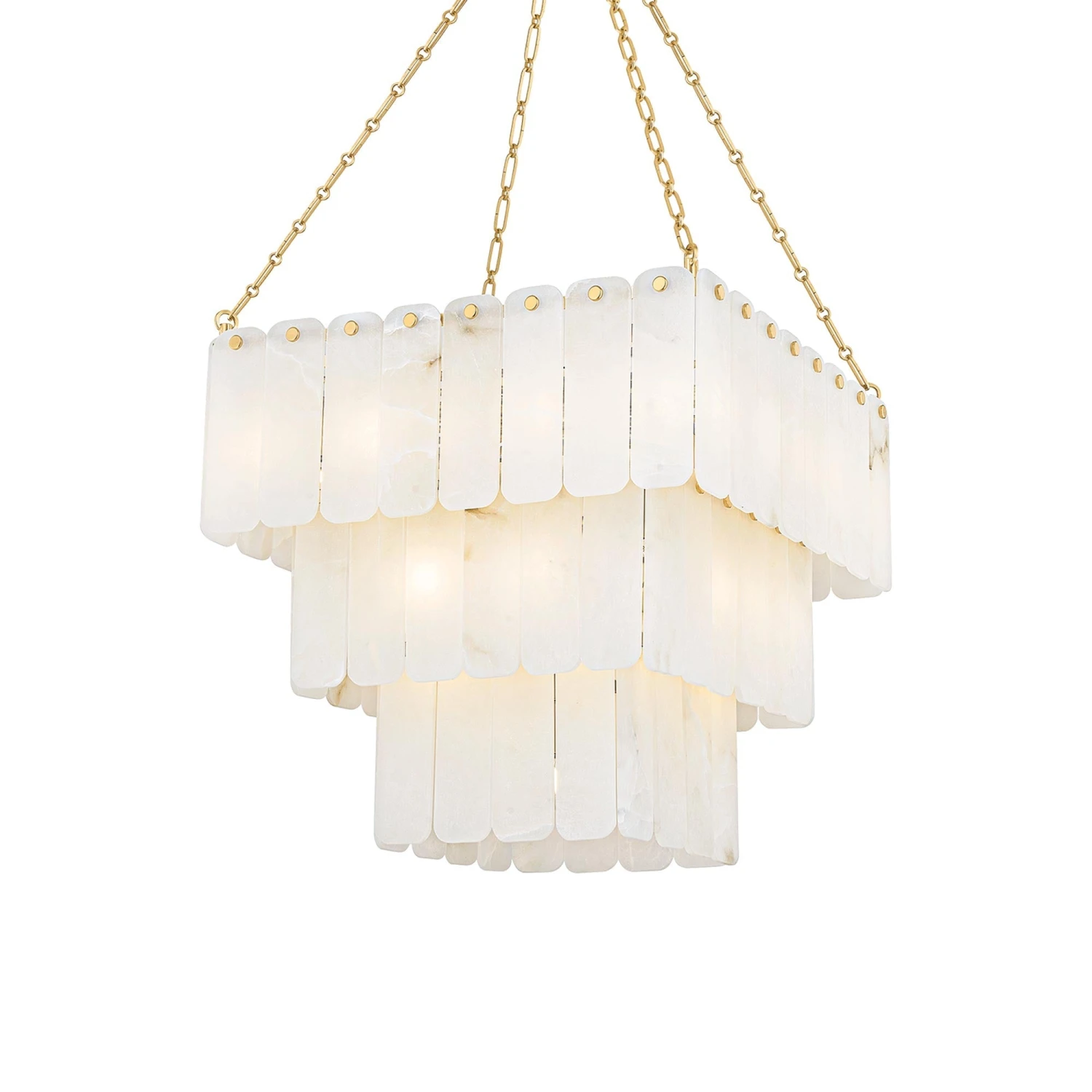 Make magic in a sophisticated space with an artisan emphasis shaping lighting into a deco-inspired fixture. The Moissanite Chandelier from Hudson Valley Lighting delivers cascading tiers of alabaster strips creating a filtering impact on interior lighting. Petite stud-like accents and aged brass finish chain suspension promises a measured design suited to casual and semi-formal settings.