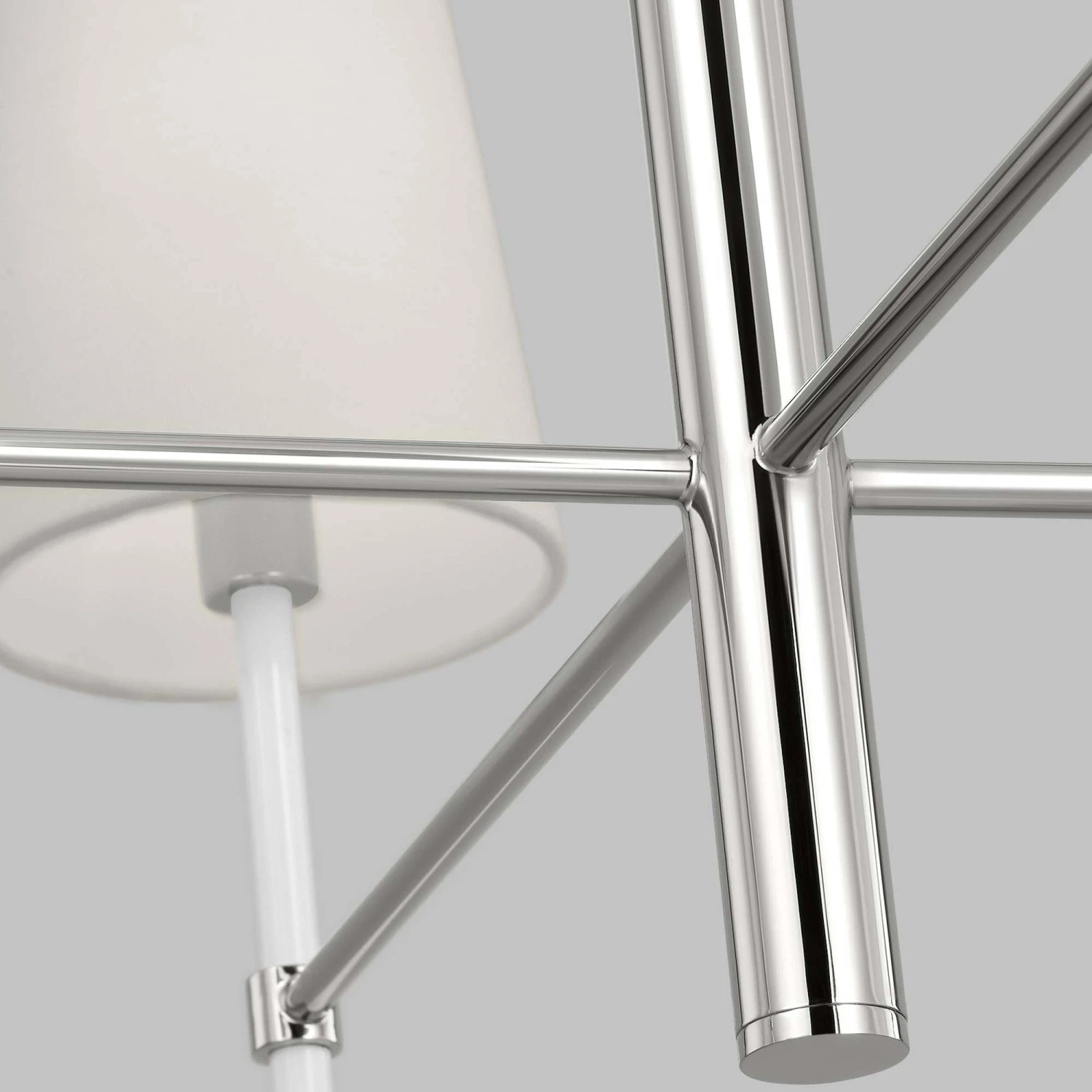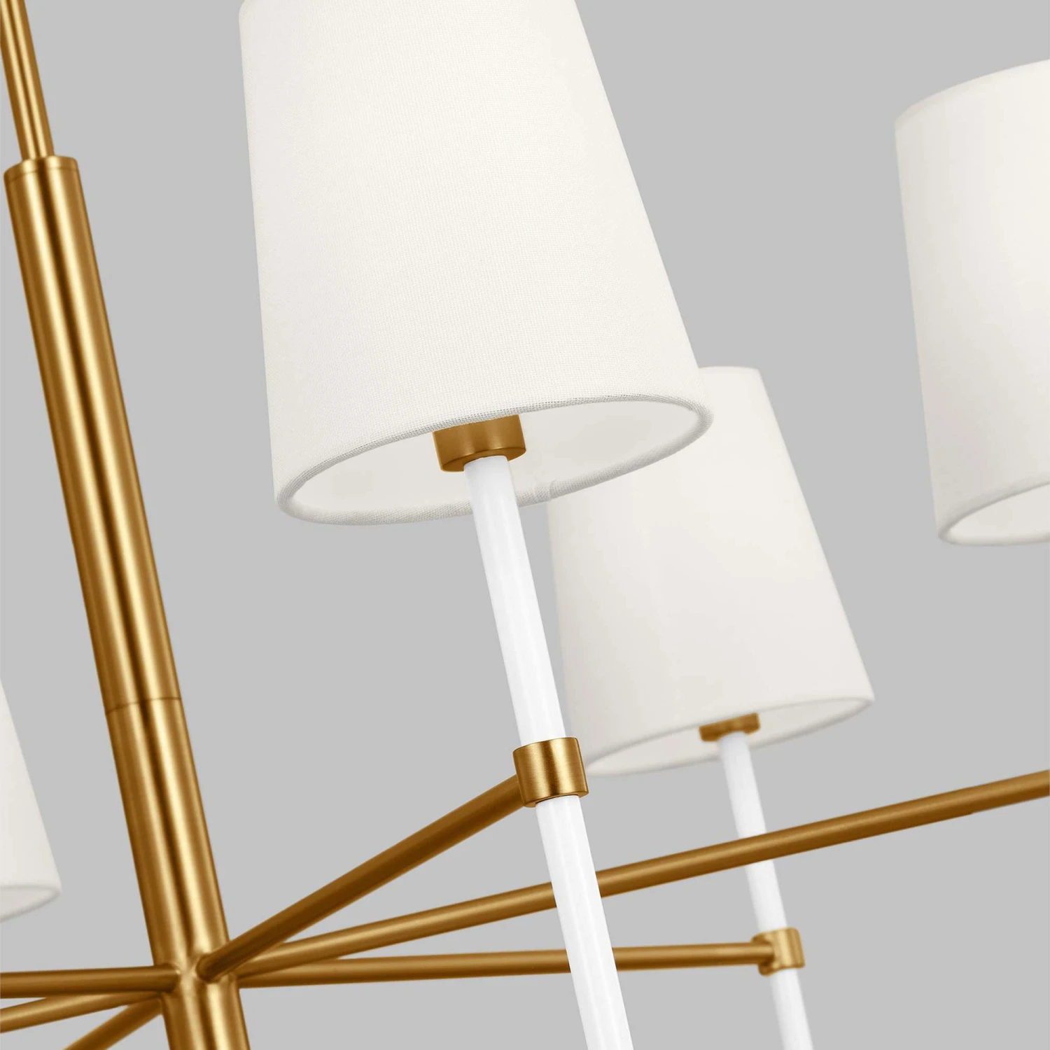 The Monroe Chandelier is inspired by graphic enameled metal jewelry and decorative accessories from Kate Spade with a nod to late 50s atomic era colorful designs. Monroe exhibits clean lighting profiles and dressed them up with painted sections and metal accents.