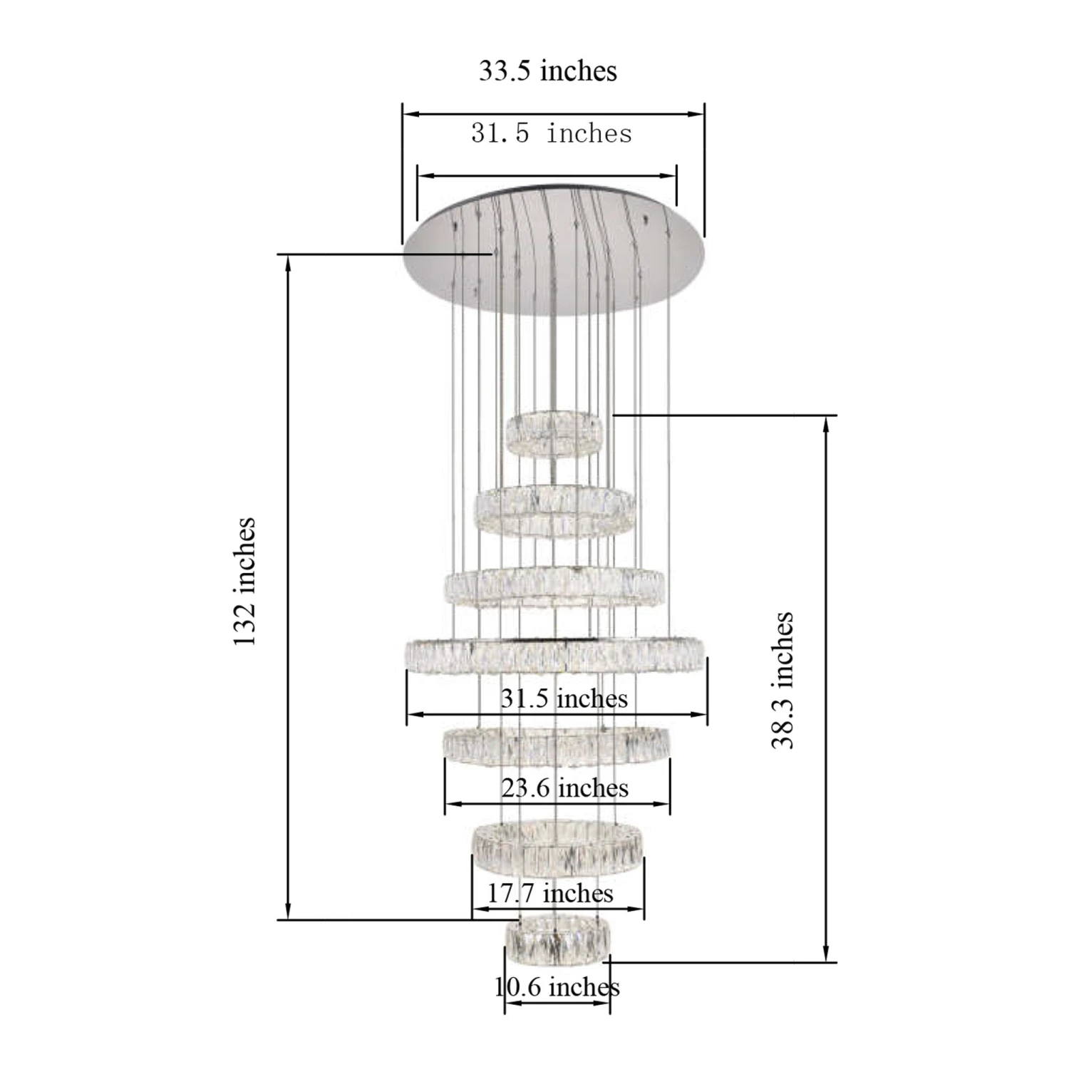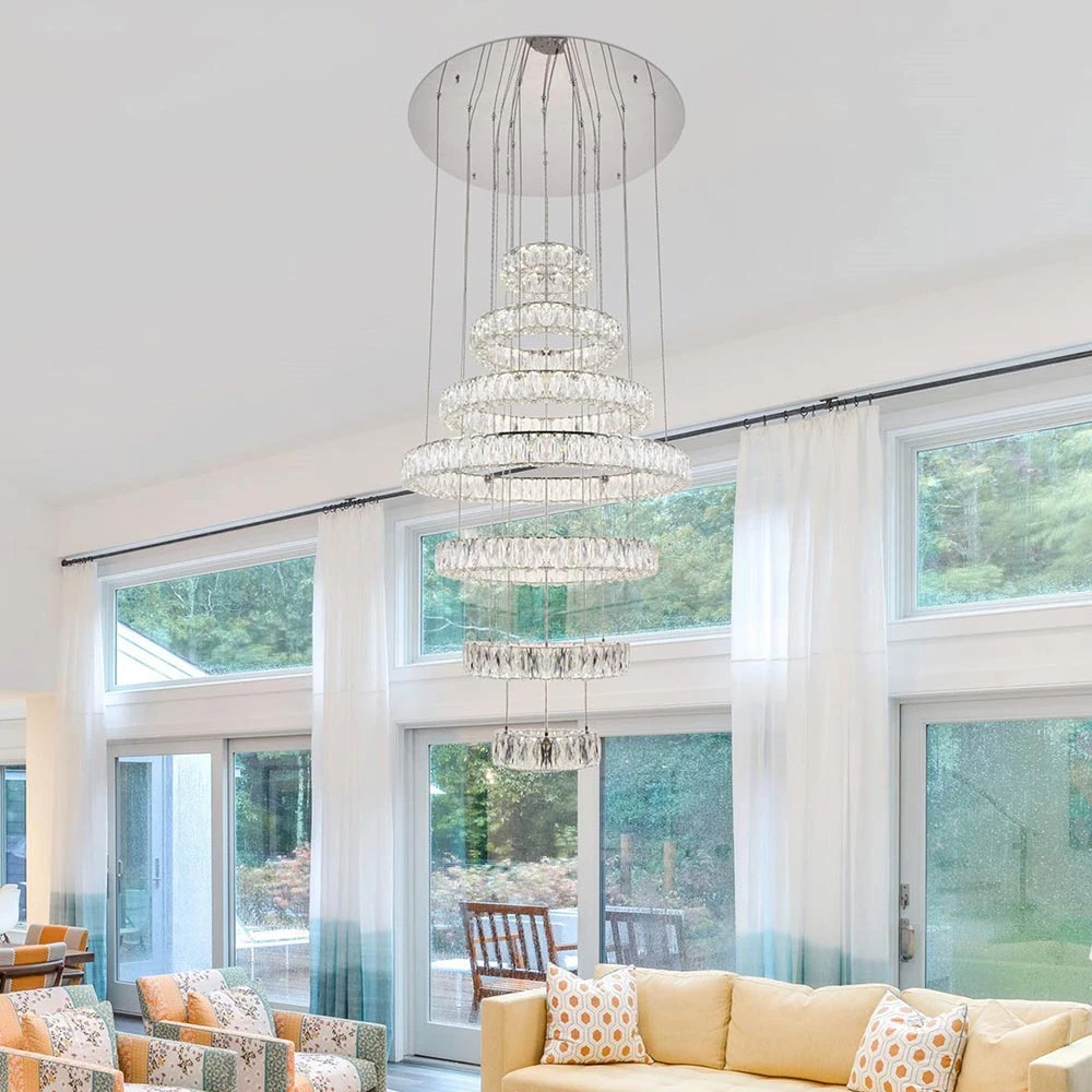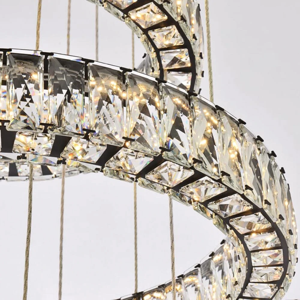Lighting truly becomes art in the exquisite Monroe LED Chandelier from Elegant Lighting. Graduated rings of crystal sparkle with sophistication, suspended to create the illusion they’re floating in space, delivering airy luxury over a staircase or dining table. A perfect blend of modern energy efficiency and bold glamour.