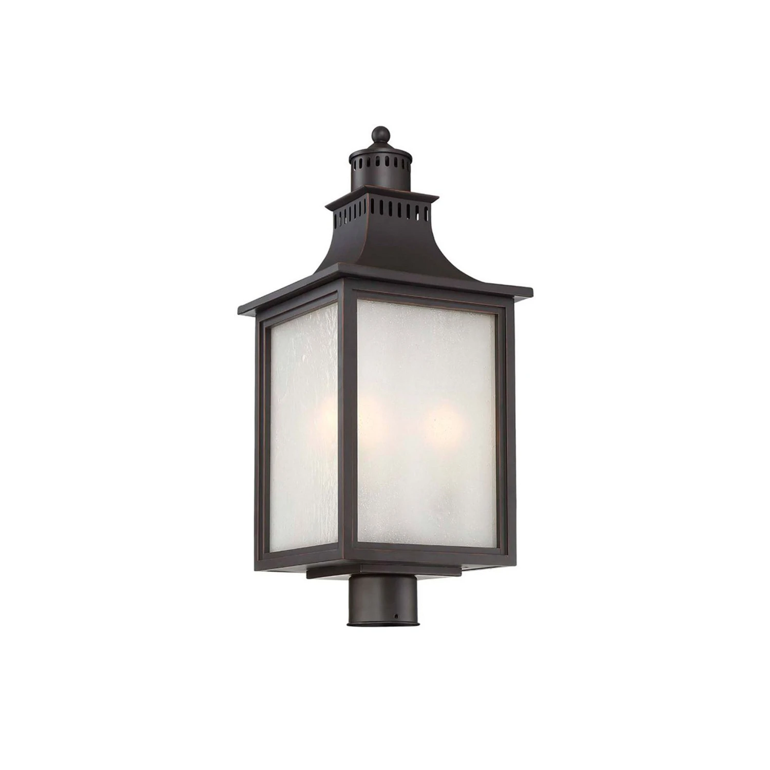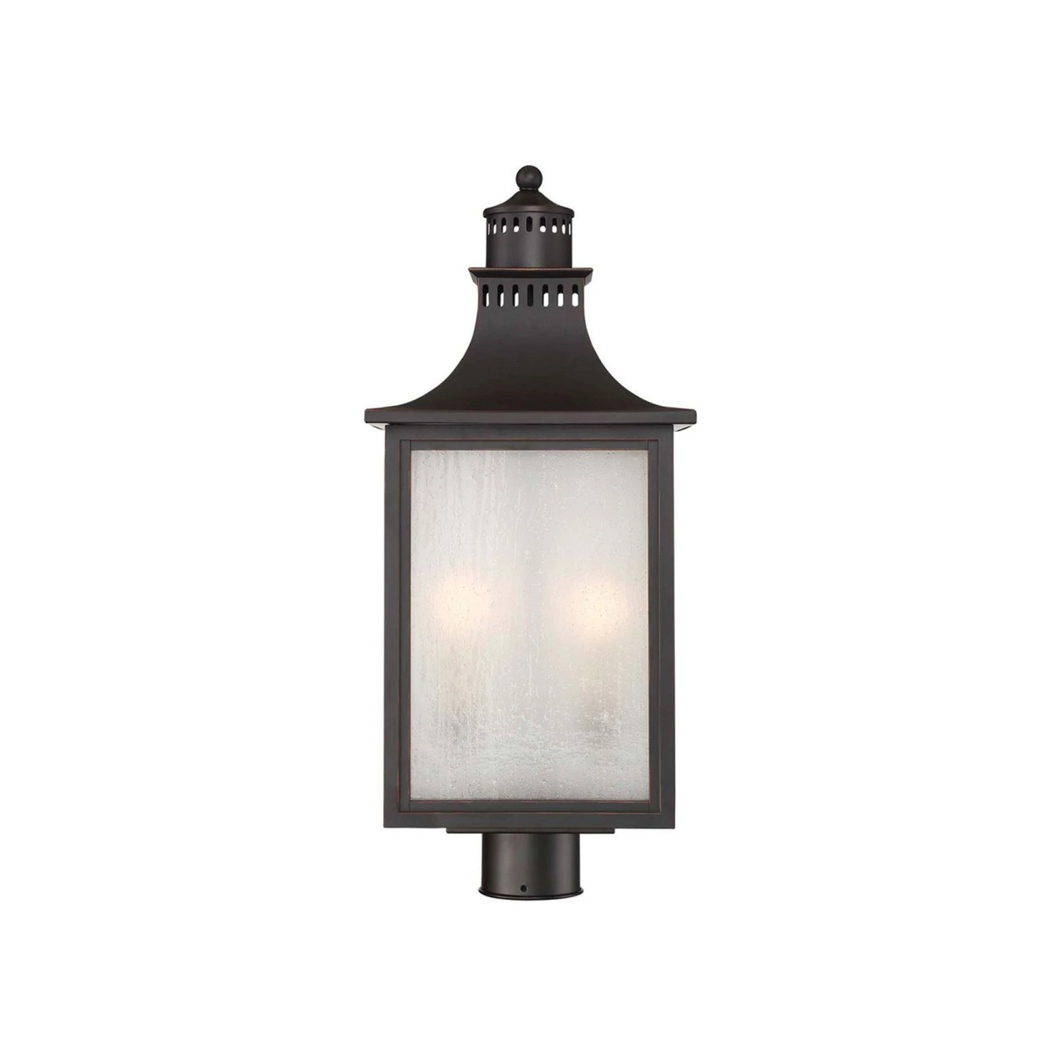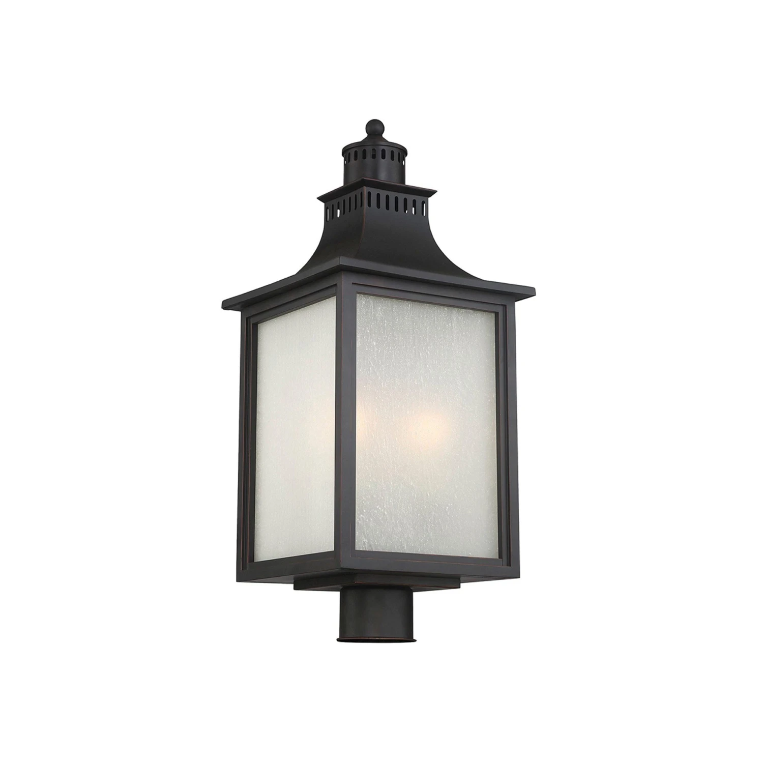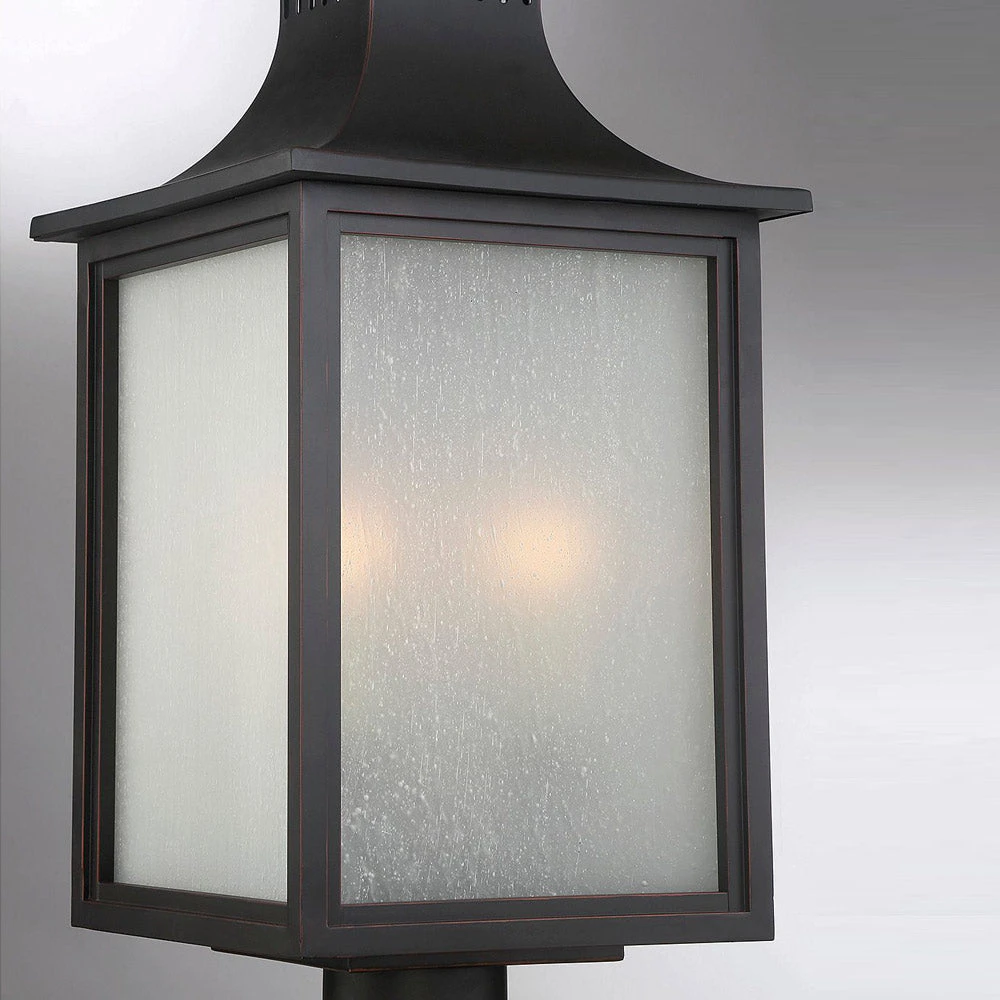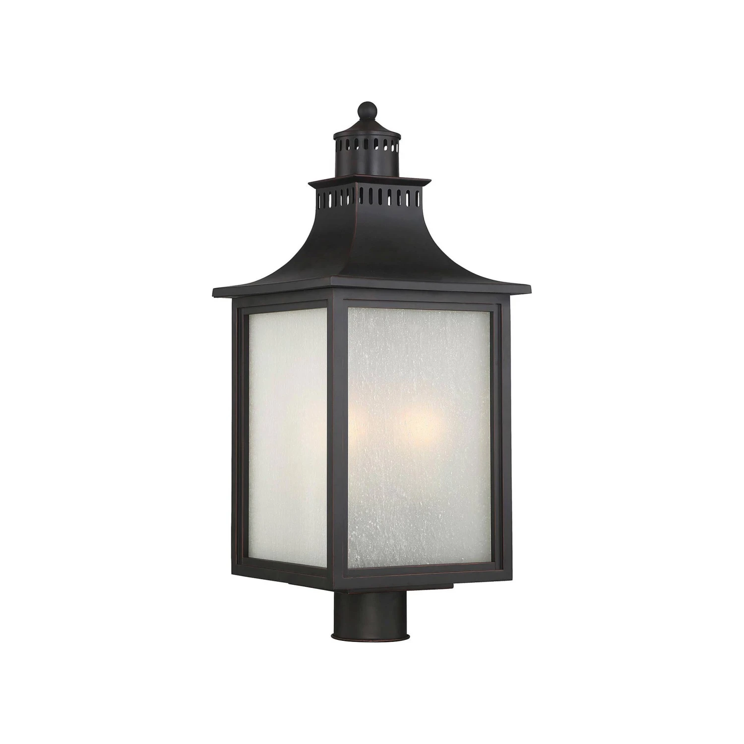 Beautifully modeled after a classic lantern motif, the Monte Grande Outdoor Post Light from Savoy House becomes a fast favorite when highlighting a custom garden space or walkway. Capture a bit of Asian inspiration with a pagoda-like top over a boxy lantern frame created of metal with pale cream seedy glass panes hinting at a romantic mood.