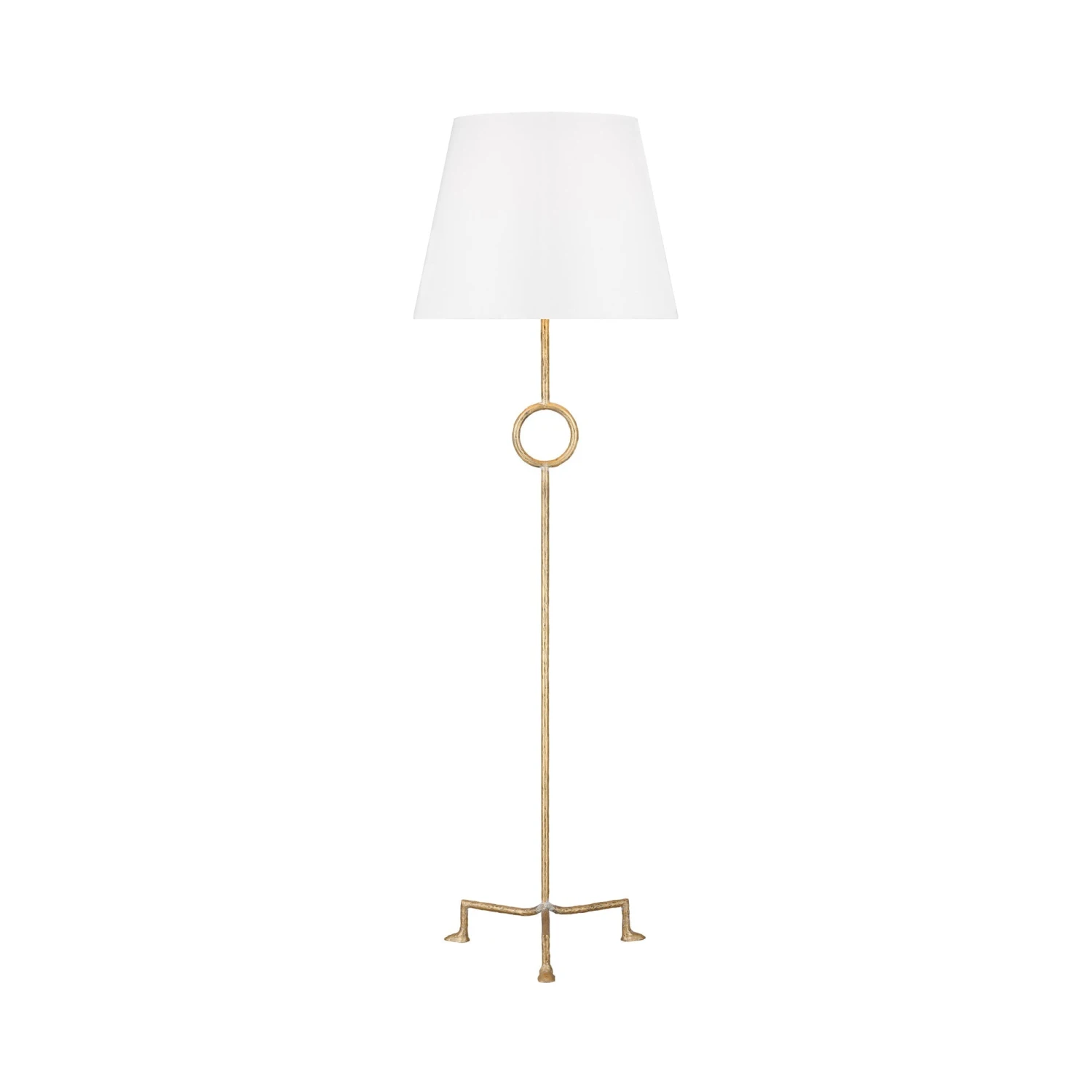 Brighten a coastal bedroom or cottage sunroom with the engaging charm of the Montour Floor Lamp from Visual Comfort Studio. Slim and simple, it shows off a decorative base and an open ring accent that bring welcome flair to any sitting area. A classic empire shade on top softens its glow and offers timeless character.