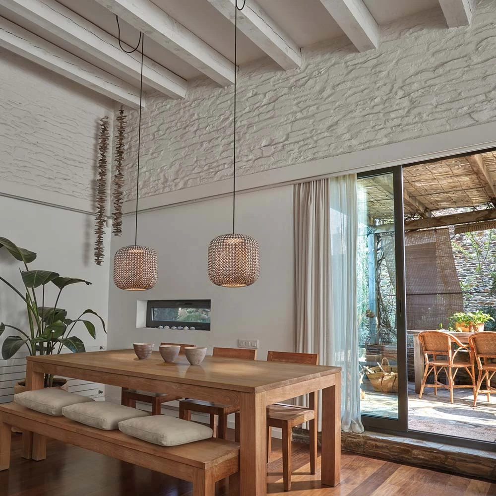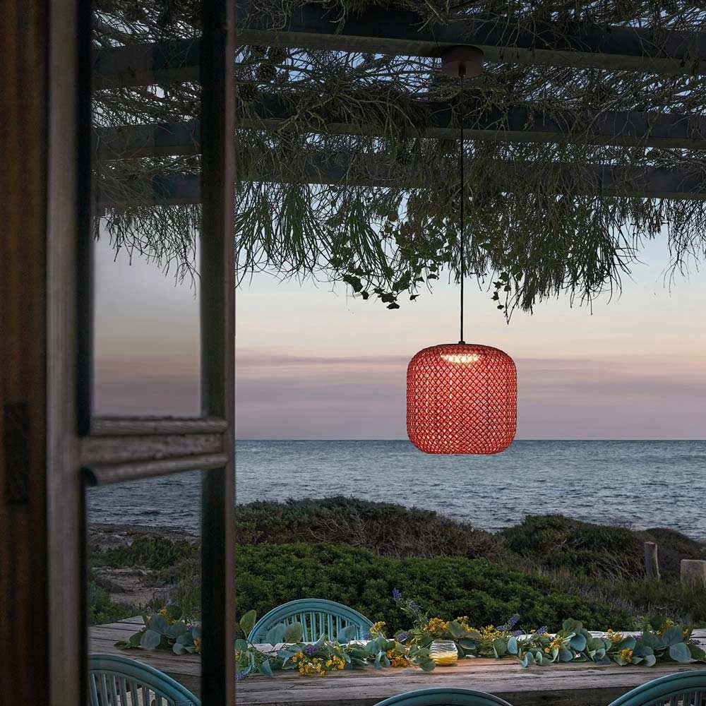A lush summer garden inspires the ornate weave featured in the Nans Outdoor LED Pendant Light from Bover. A stylish way to bring texture and depth over a garden dining table or seating group, it delivers a wide conical shade paired with an elliptical polyethylene diffuser for soft, inviting illumination.