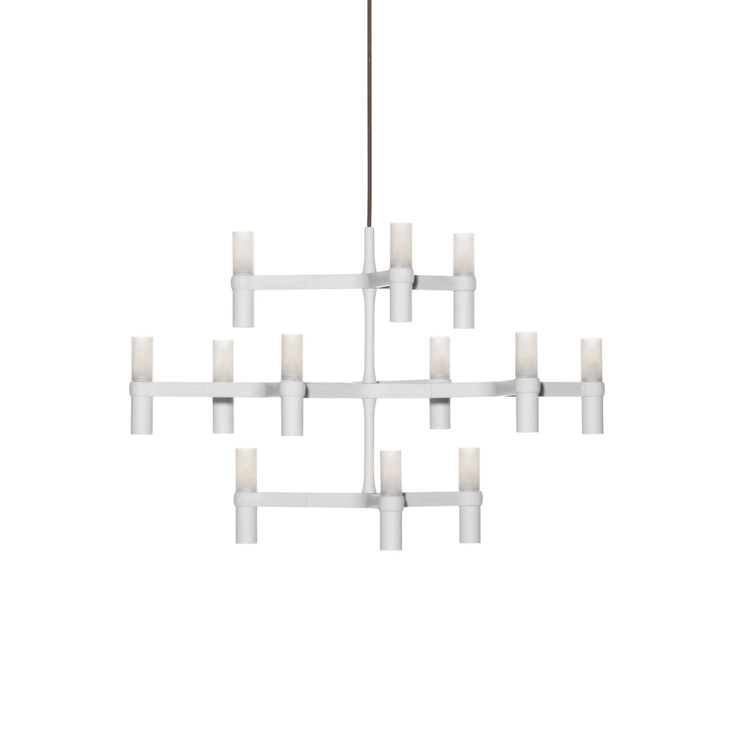 Introduce a modified industrial motif to a modern space with the Crown Minor Pendant Light from NEMO, an exceptional fixture destined to become a stunning focal point. The raw, edgy imagery of piping plays out in stacked rows with extended metal arms holding a collection of shades and bulbs illuminating soft or ambient lighting to live by.