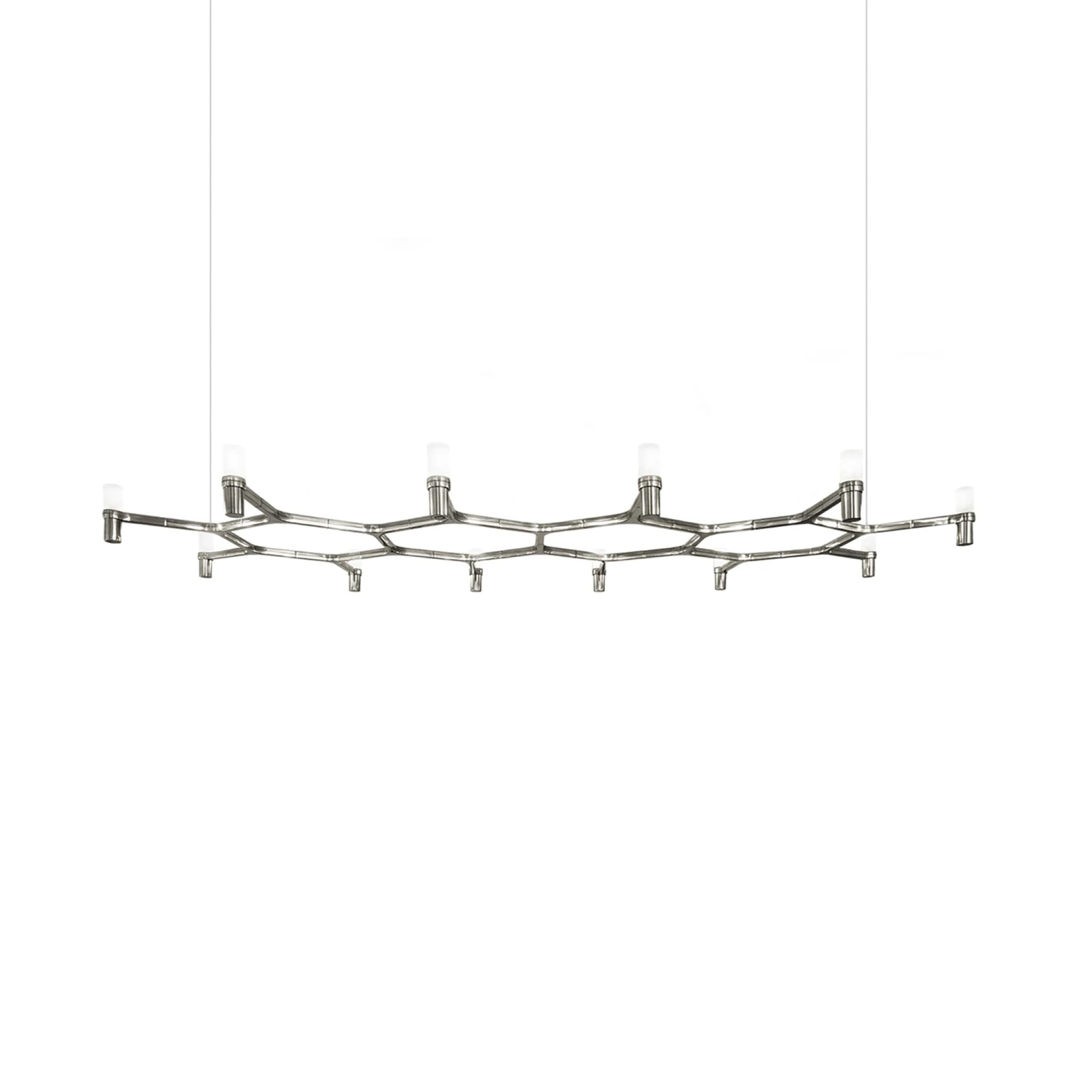 Industrial inspiration on a grand scale delivers a dynamic look to contemporary casual spaces, turning the Crown Plana Major Pendant Light from NEMO into a multi-purpose source of lighting. Capture the authenticity of a motif based on metal piping with a compelling honeycomb silhouette, soaking in widespread, radiant illumination from tapered shades and sandblasted glass diffusers.