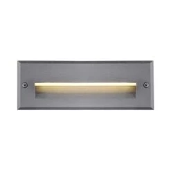 This exterior recessed light is a classic, rectangle-shaped 9-3/4 inch long die-cast aluminum recessed light and utilizes LED light sources. The housing is designed to light an exterior or interior staircase or any other area that calls for a lighting from a concealed aperture. Choose from black or grey powder coat. Newport is ELV, TRIAC.