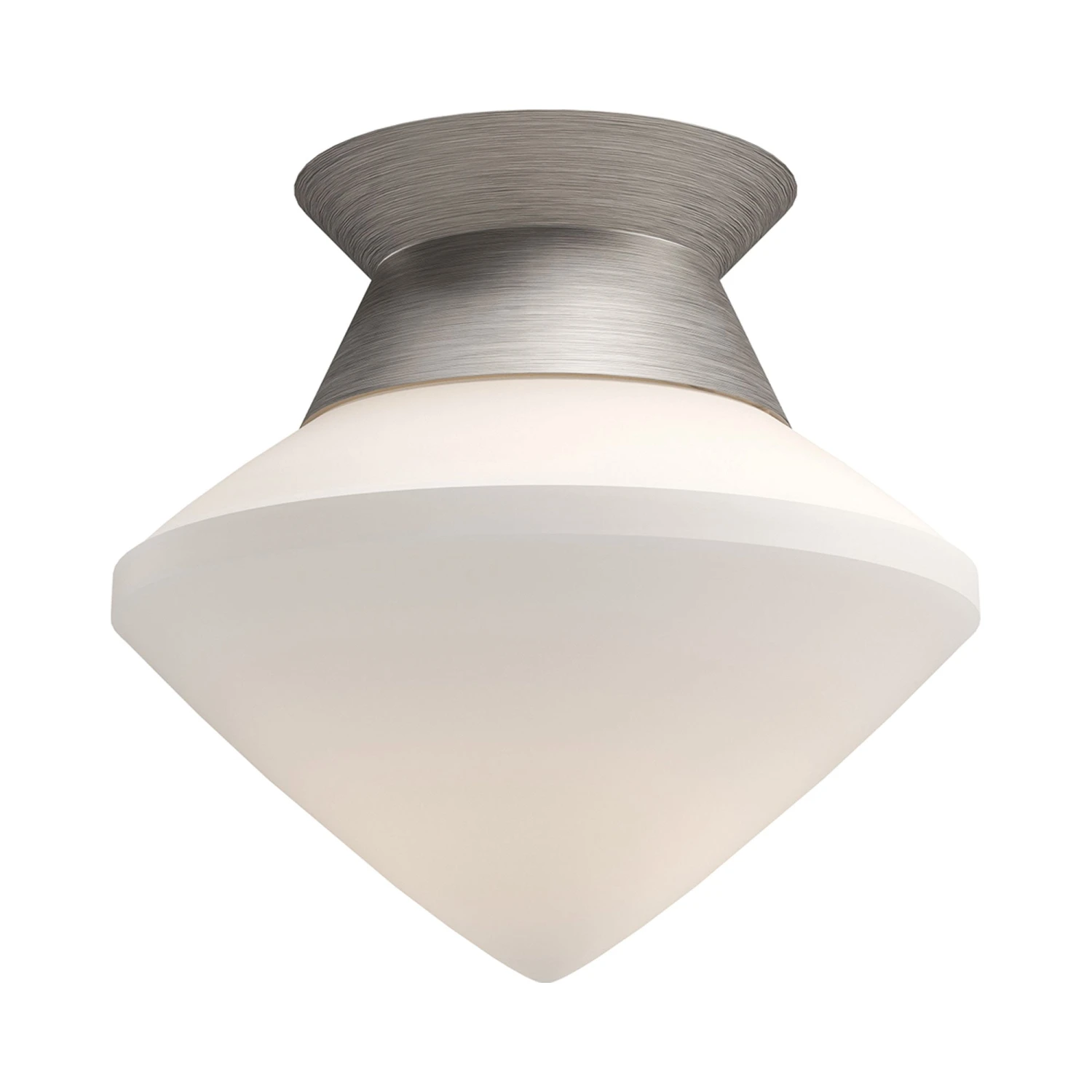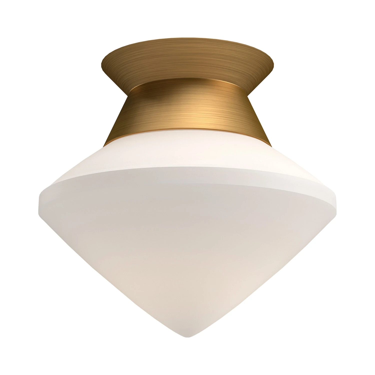 Silhouetting narrates the classic Art Deco inspired style of the Nora Flush Mount Ceiling Light from Alora Mood, contributing to a themed space with an abundance of personality. Capture an updated schoolhouse vibe with this fixture revisiting the mid-century style motif and leaning heavily on a festive half-diamond silhouette blending opal glass and metal.